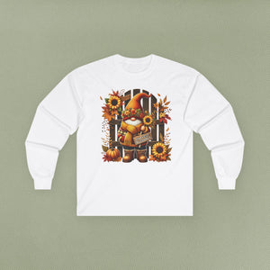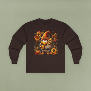 Autumn Gnome Long Sleeve Tee, Fall Fashion Top, Cozy Apparel for Harvest, Gift for Halloween & Thanksgiving