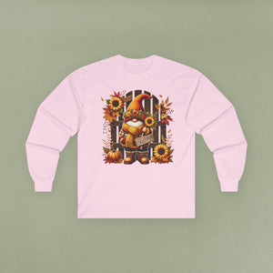 Embrace the cozy vibes of autumn with this Ultra Cotton Long Sleeve Tee. Perfect for layering or wearing on its own, this shirt combines comfort with style, making it ideal for casual outings or cozy nights in. The charming design featuring a friendly gnome surrounded by sunflowers adds a whimsical touch, perfect for celebrating the fall season. It’s an excellent choice for family gatherings, Halloween festivities, or simply enjoying a brisk walk on a cool day. Targeted for adults who appreciate both comfort and creativity, this shirt makes a thoughtful gift for birthdays, Thanksgiving, or just because.