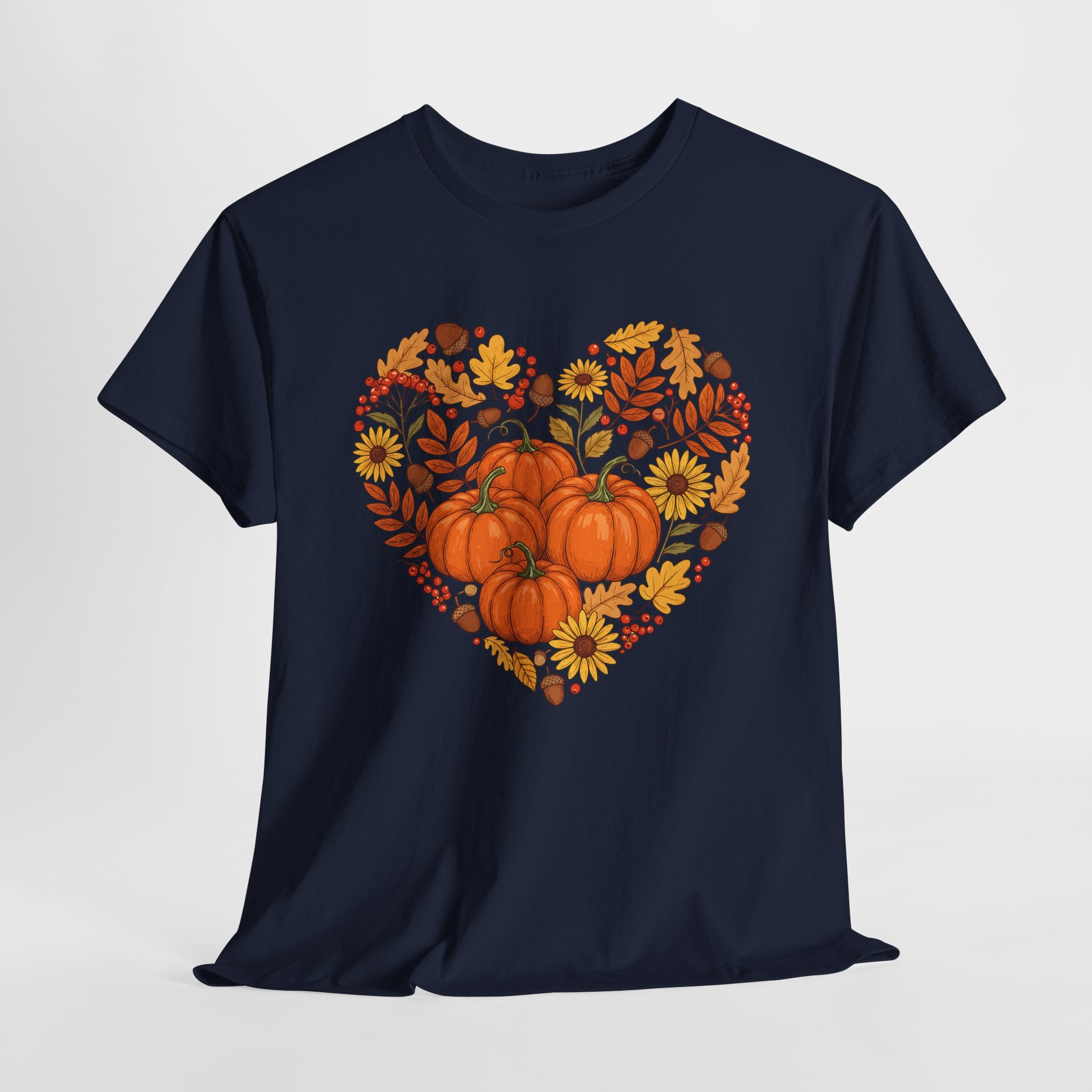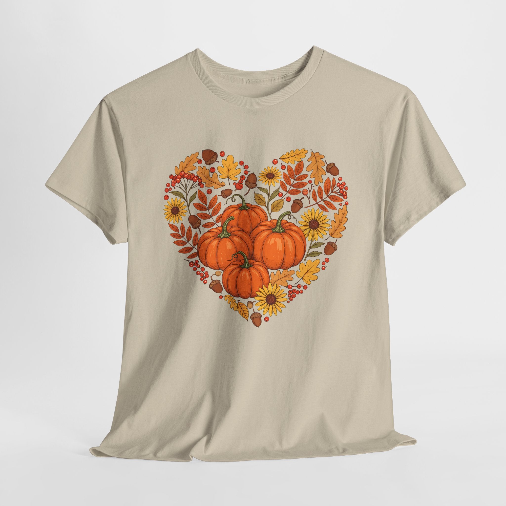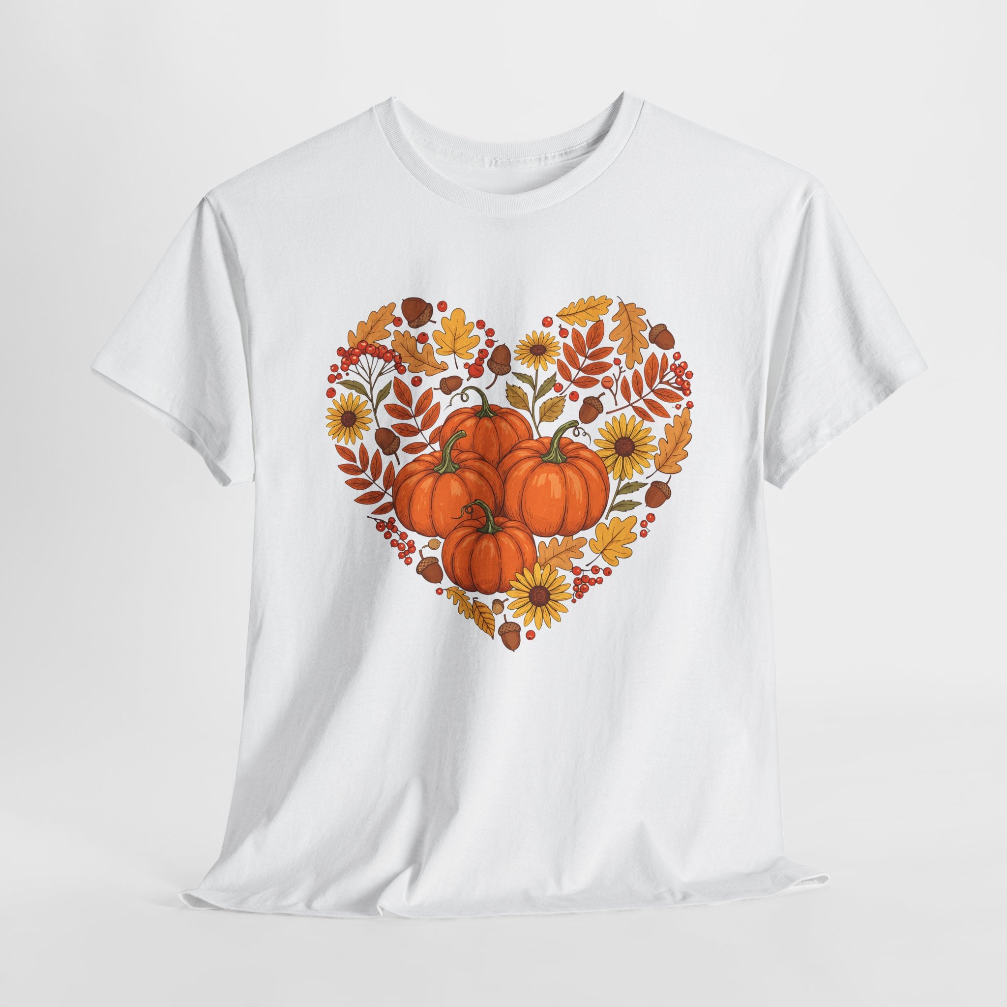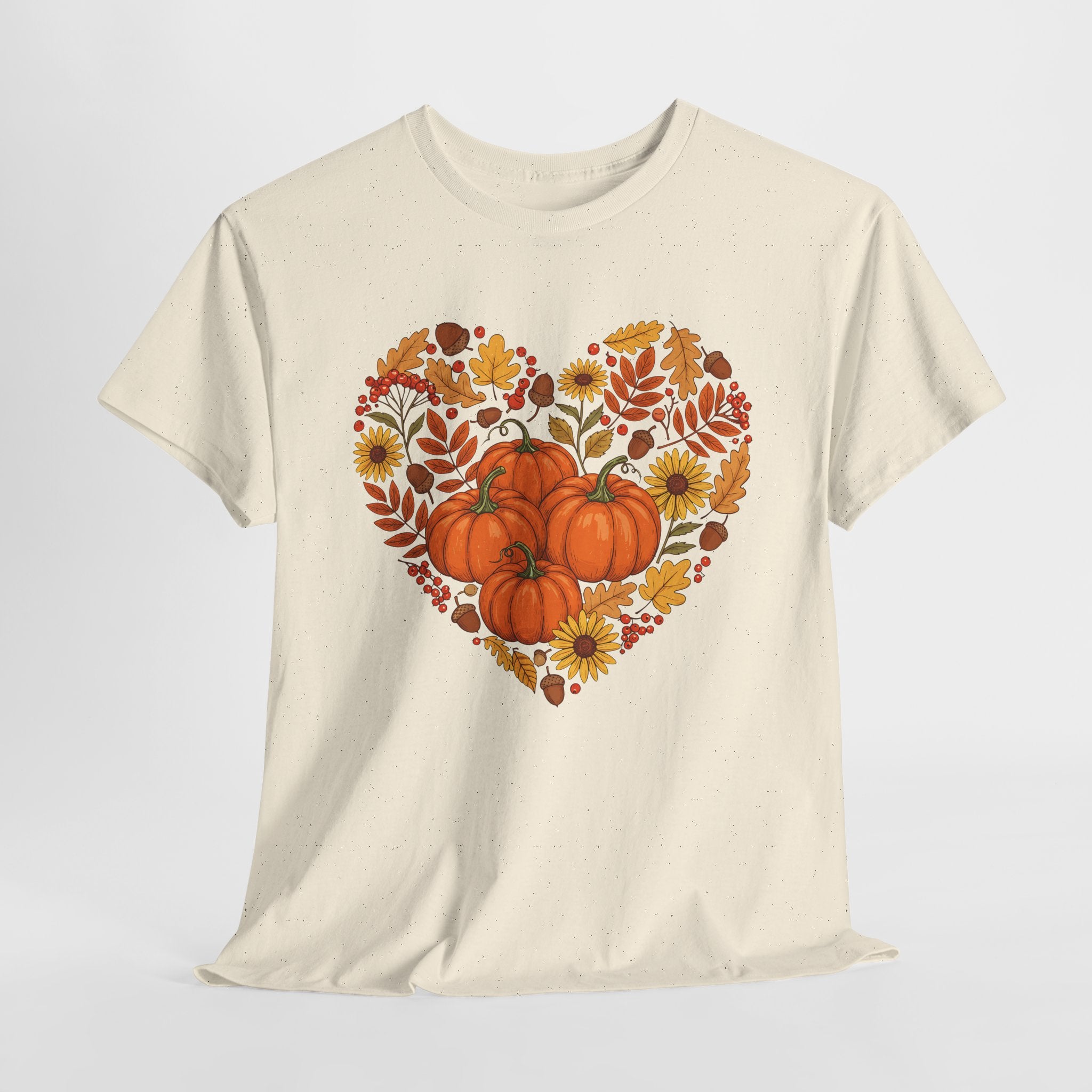 Autumn Themed Heavy Cotton Tee, Fall Shirt, Pumpkin Heart Tee, Cute Graphic Tee, Seasonal Apparel, Harvest Gift Idea