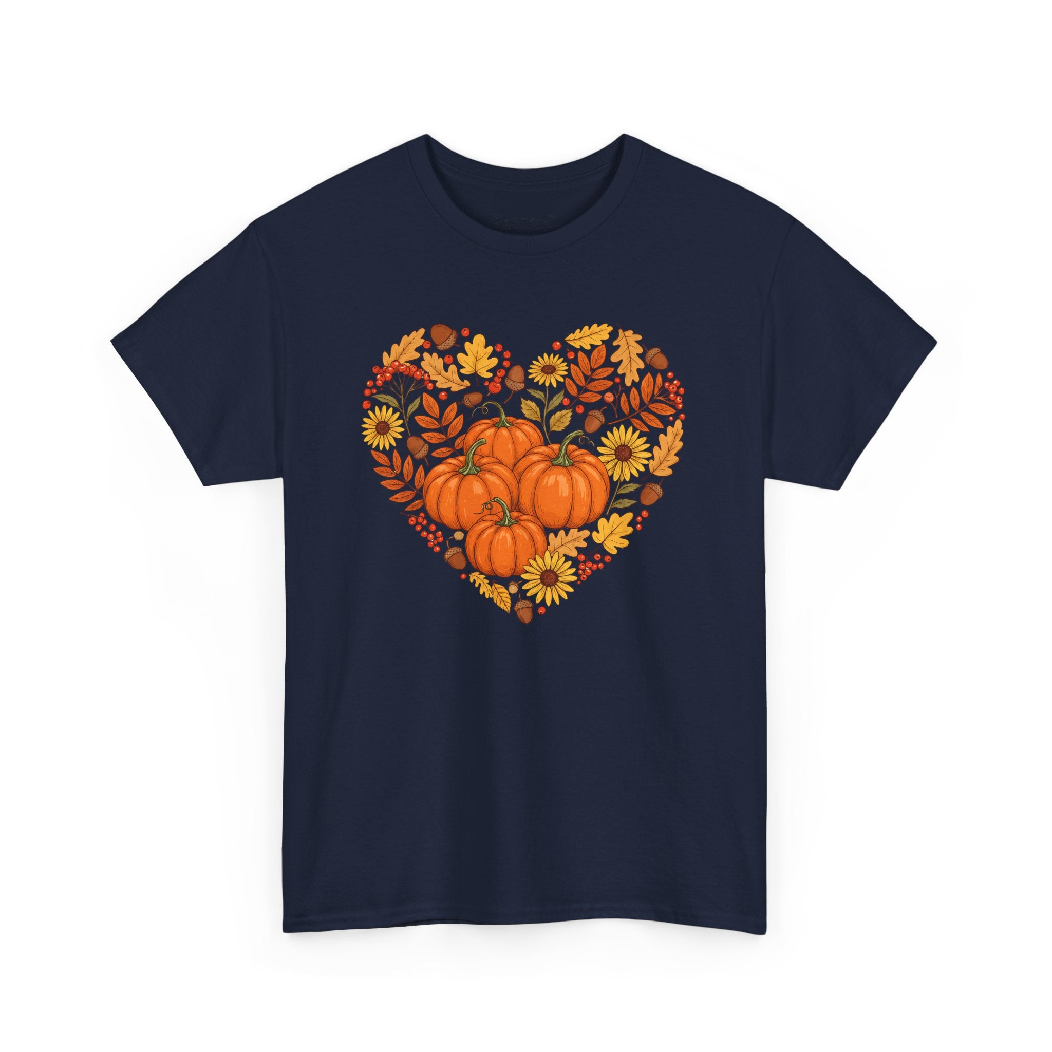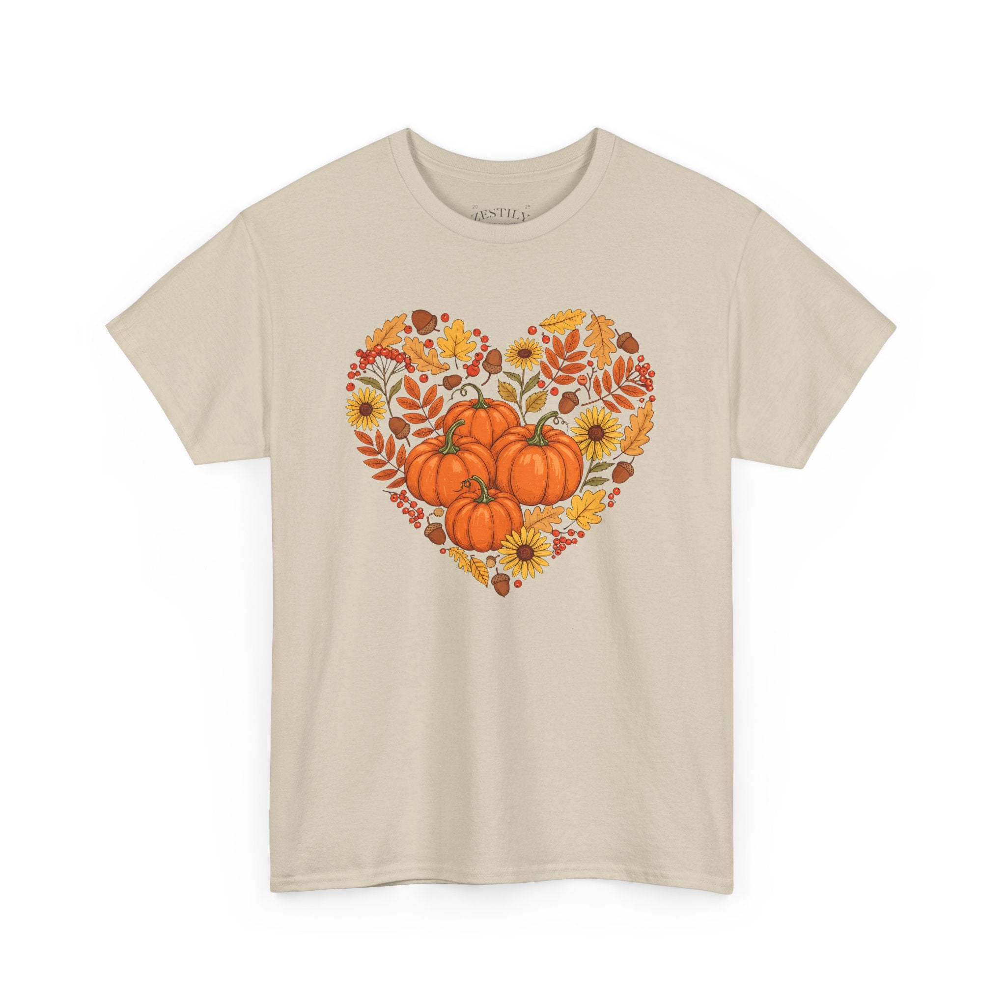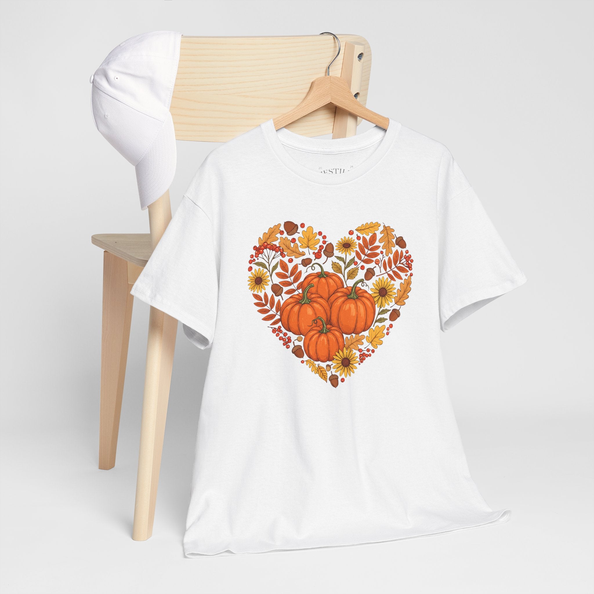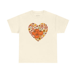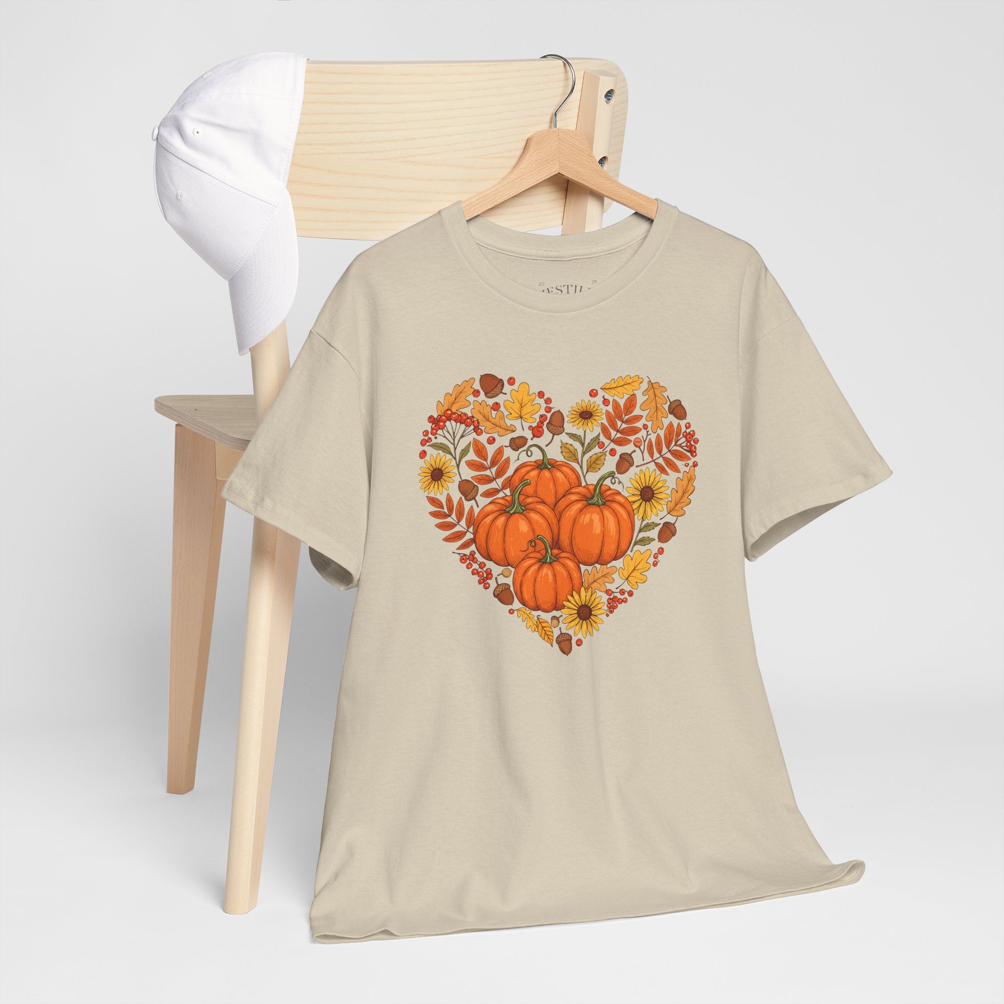 Autumn Themed Heavy Cotton Tee, Fall Shirt, Pumpkin Heart Tee, Cute Graphic Tee, Seasonal Apparel, Harvest Gift Idea