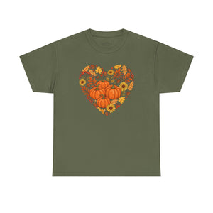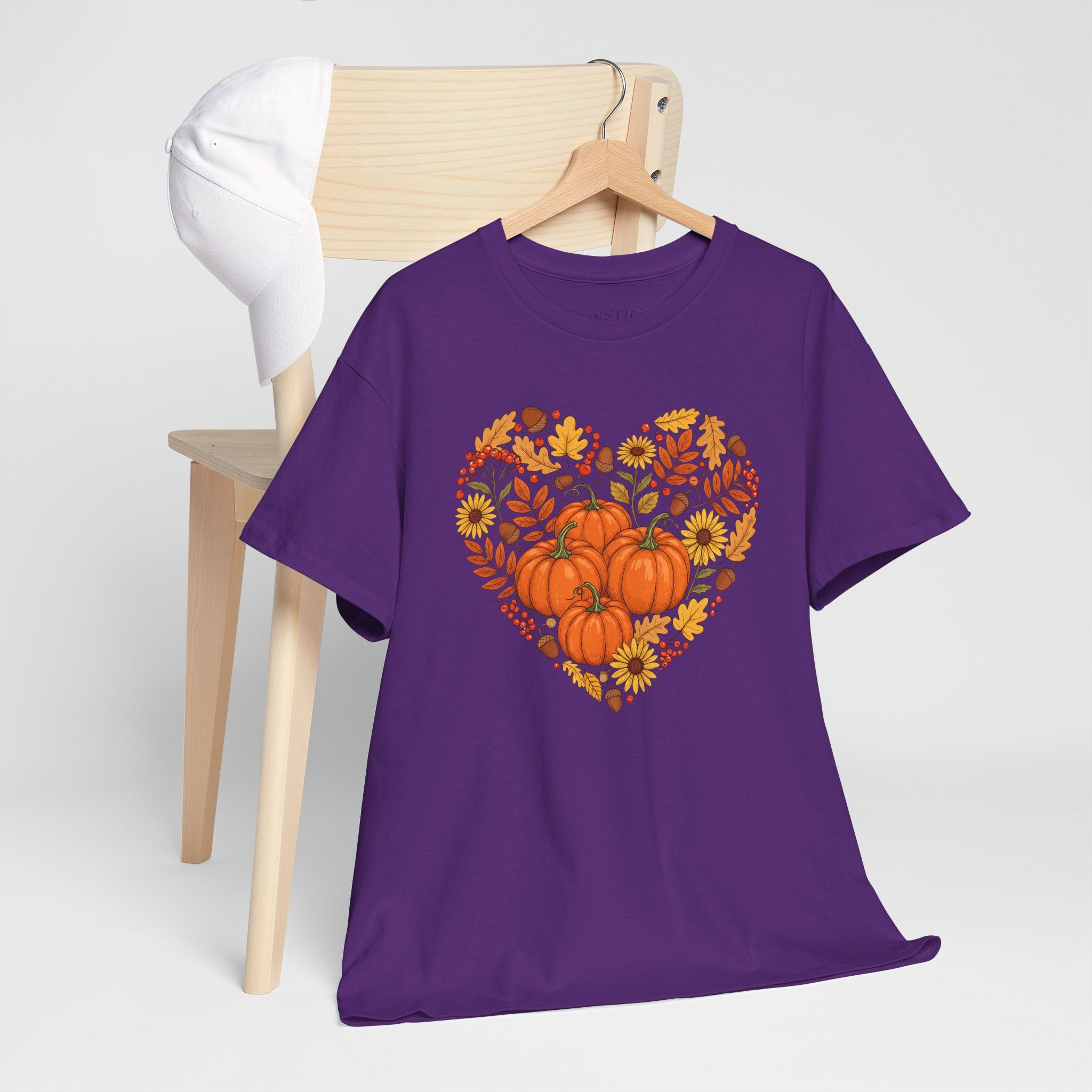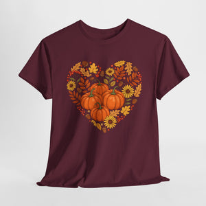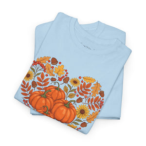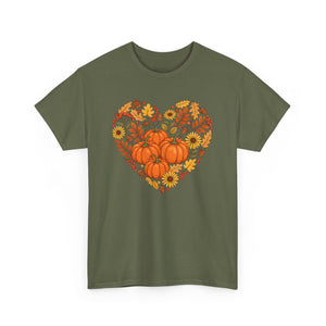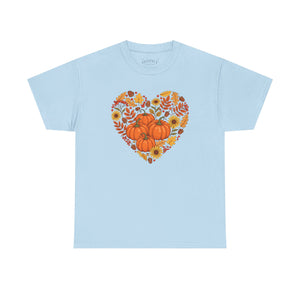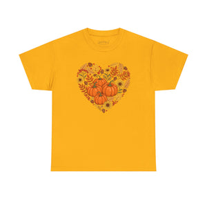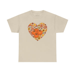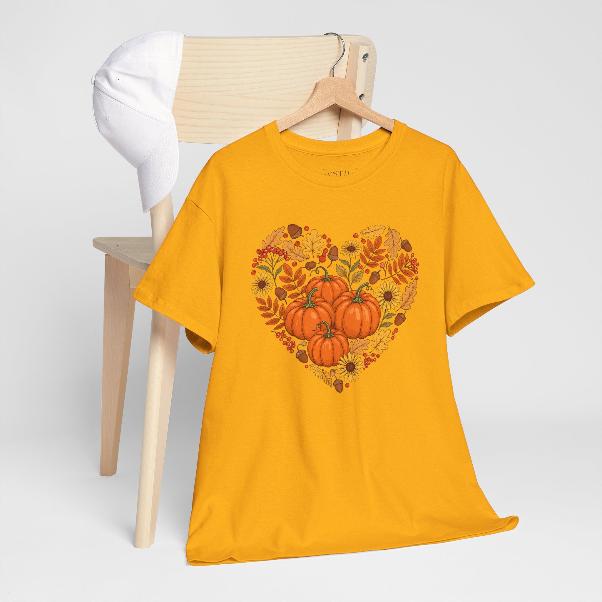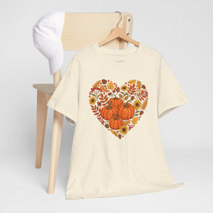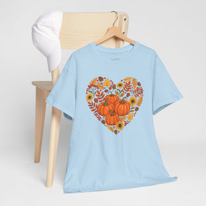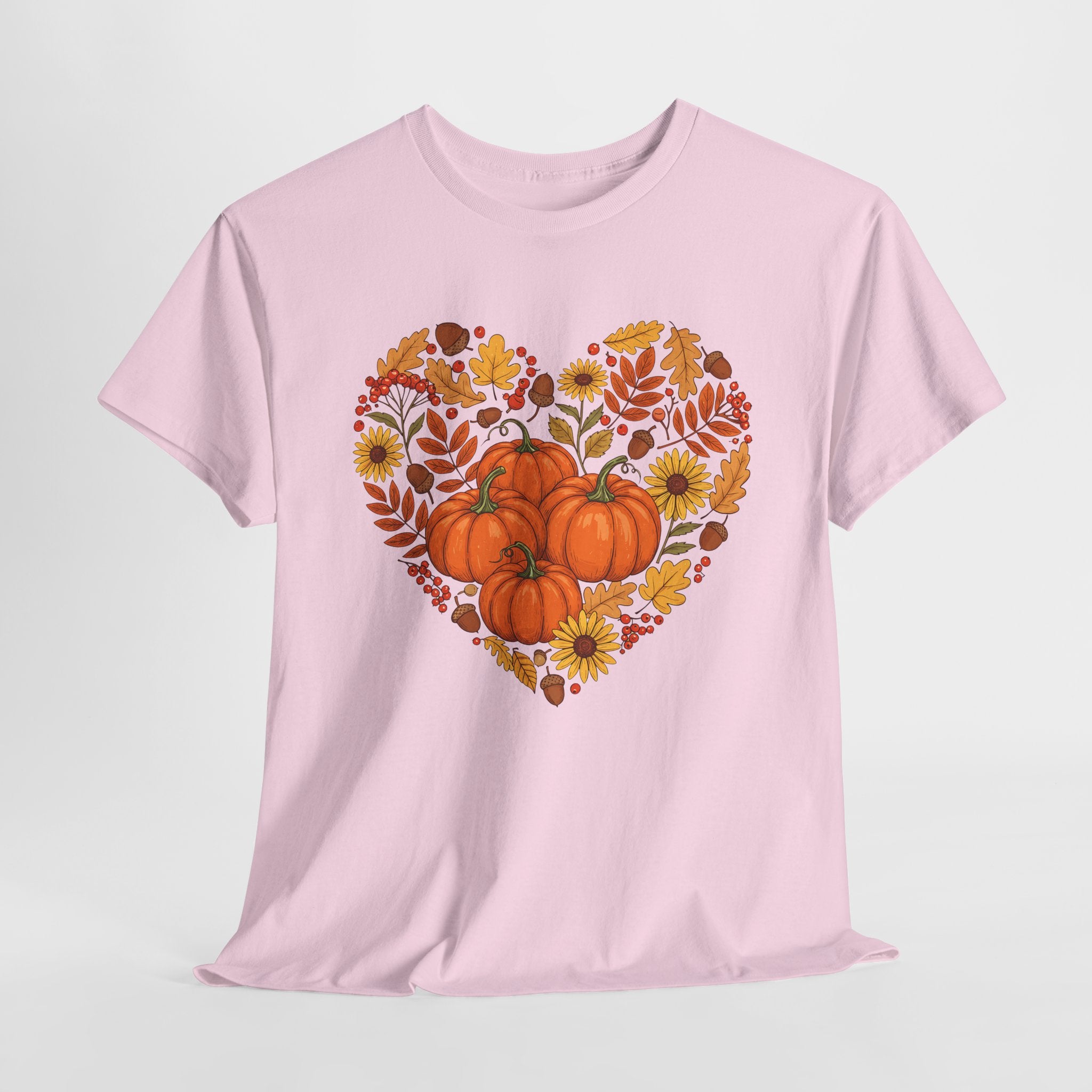 Autumn Themed Heavy Cotton Tee, Fall Shirt, Pumpkin Heart Tee, Cute Graphic Tee, Seasonal Apparel, Harvest Gift Idea