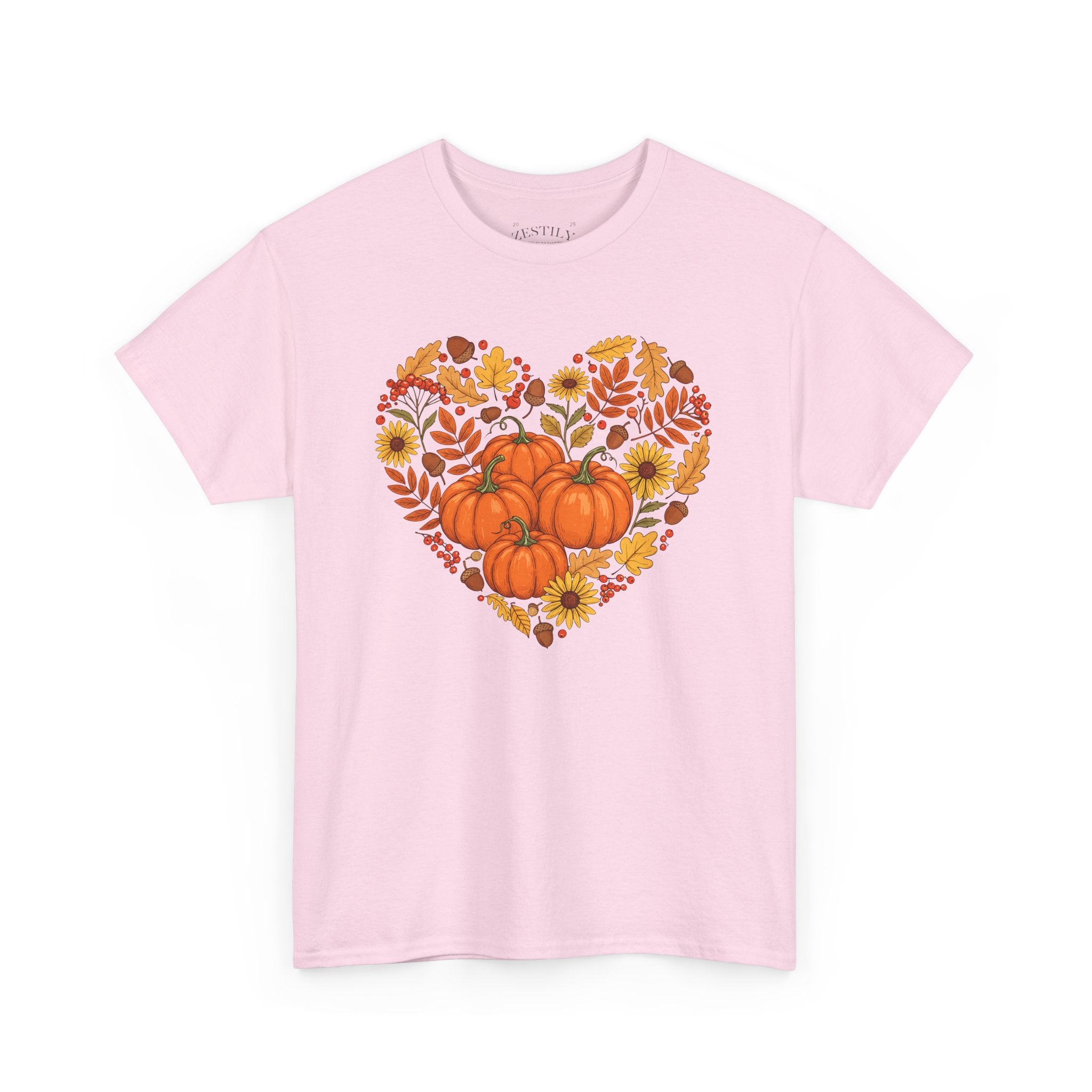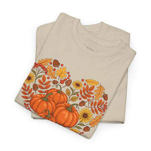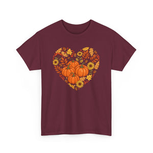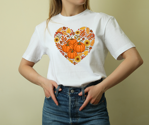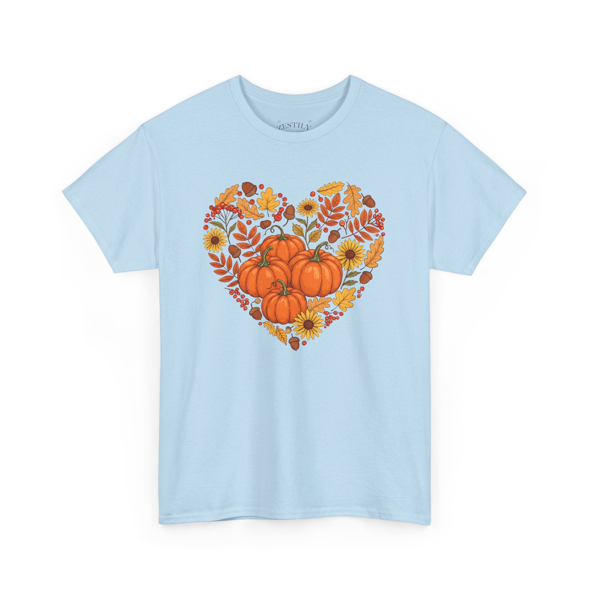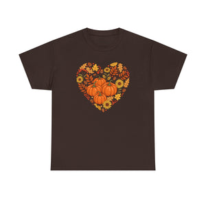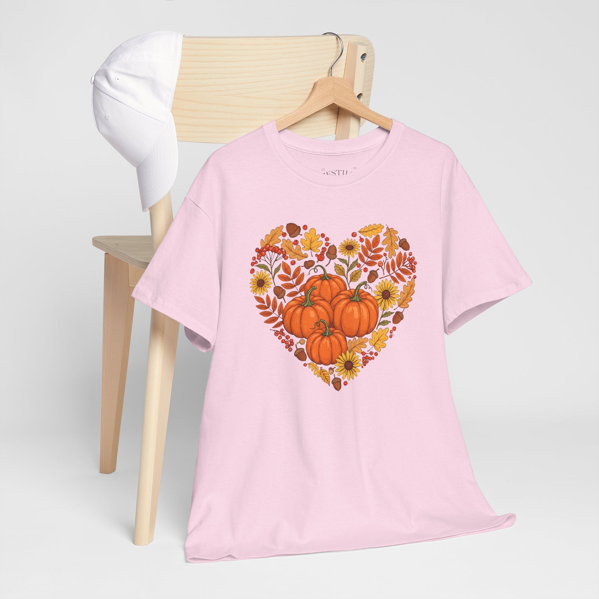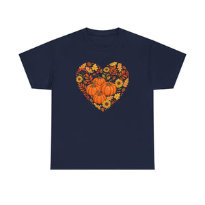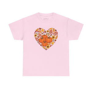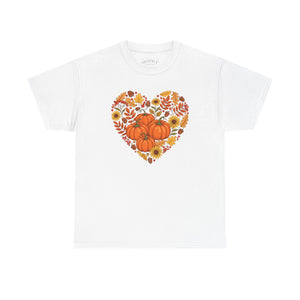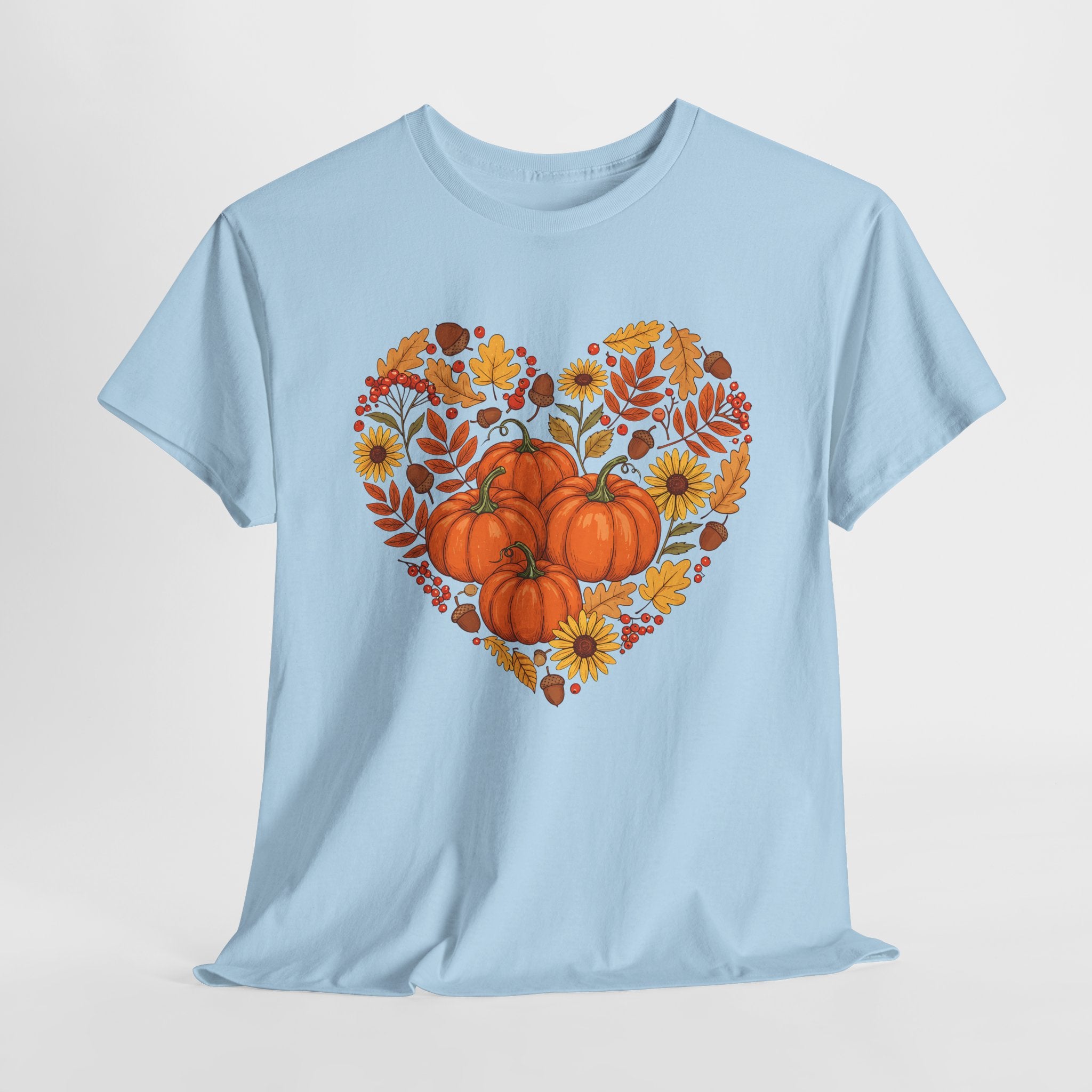 Autumn Themed Heavy Cotton Tee, Fall Shirt, Pumpkin Heart Tee, Cute Graphic Tee, Seasonal Apparel, Harvest Gift Idea