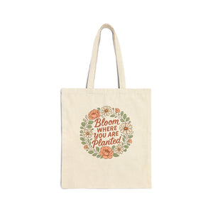 Bloom Where You Are Planted Tote Bag, Eco-Friendly Canvas Bag, Gardening Gifts, Inspirational Quote Tote, Floral Design Bag