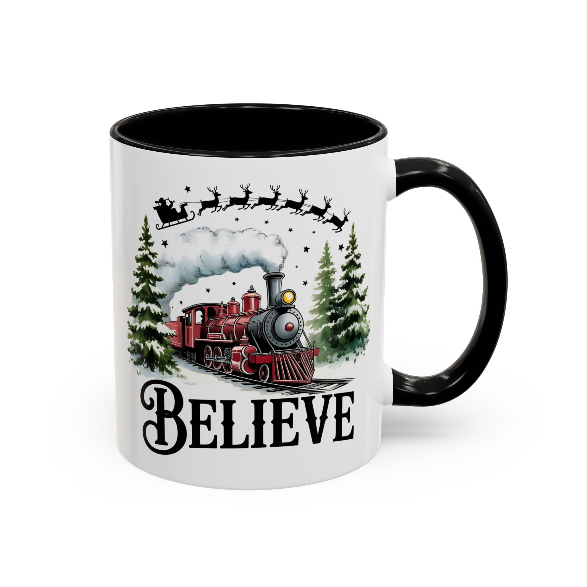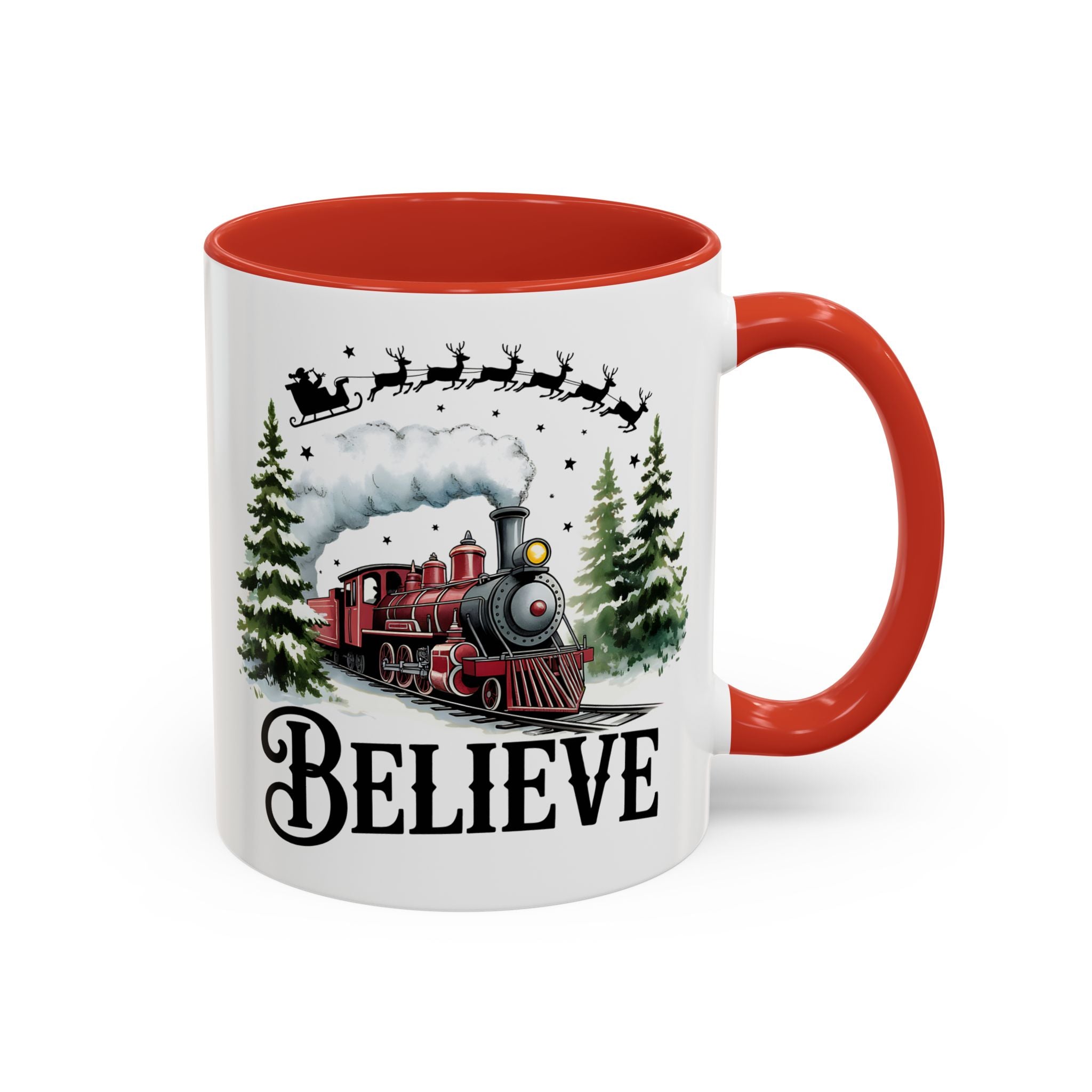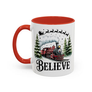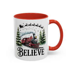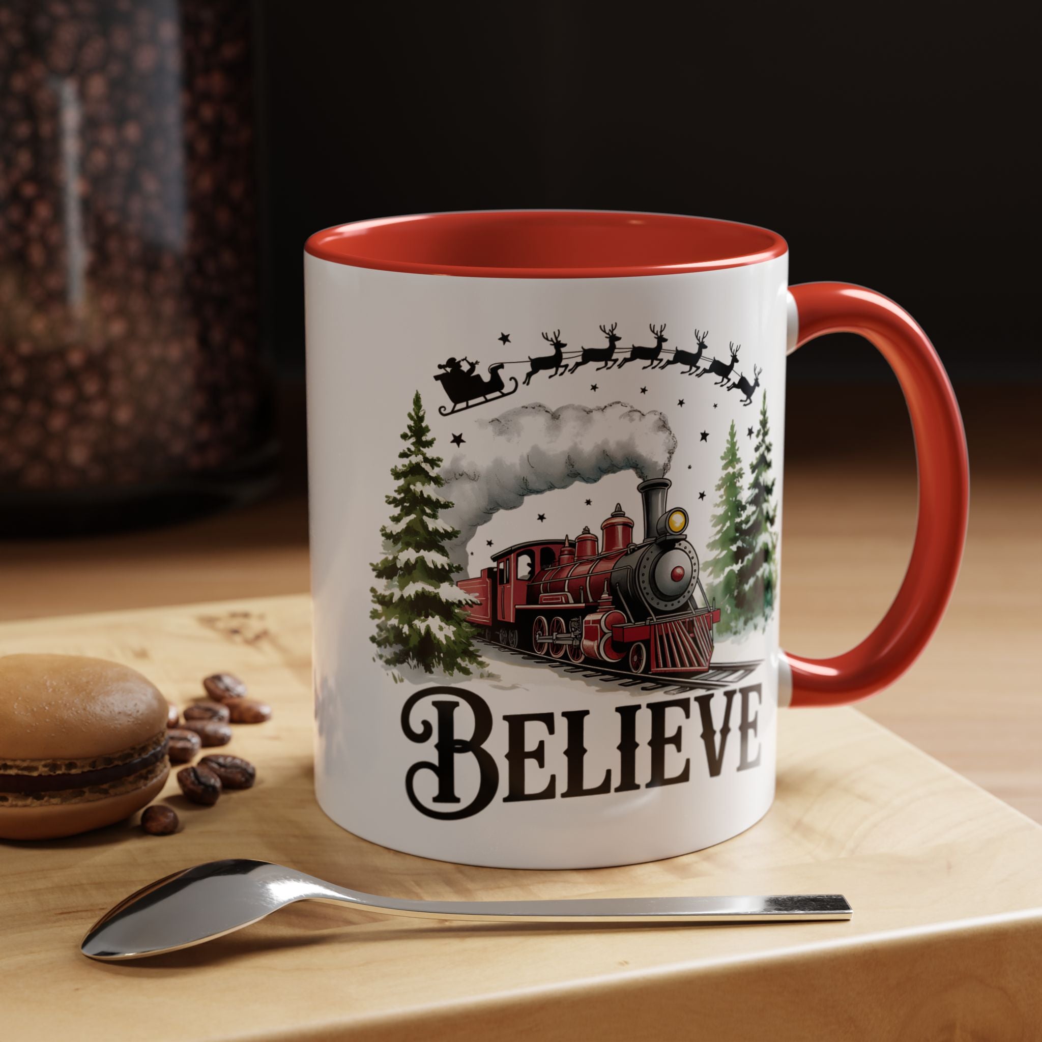 Christmas Believe Coffee Mug, Holiday Mug, Santa Train Mug, Winter Decor, Hot Cocoa Mug, Gift for Her
