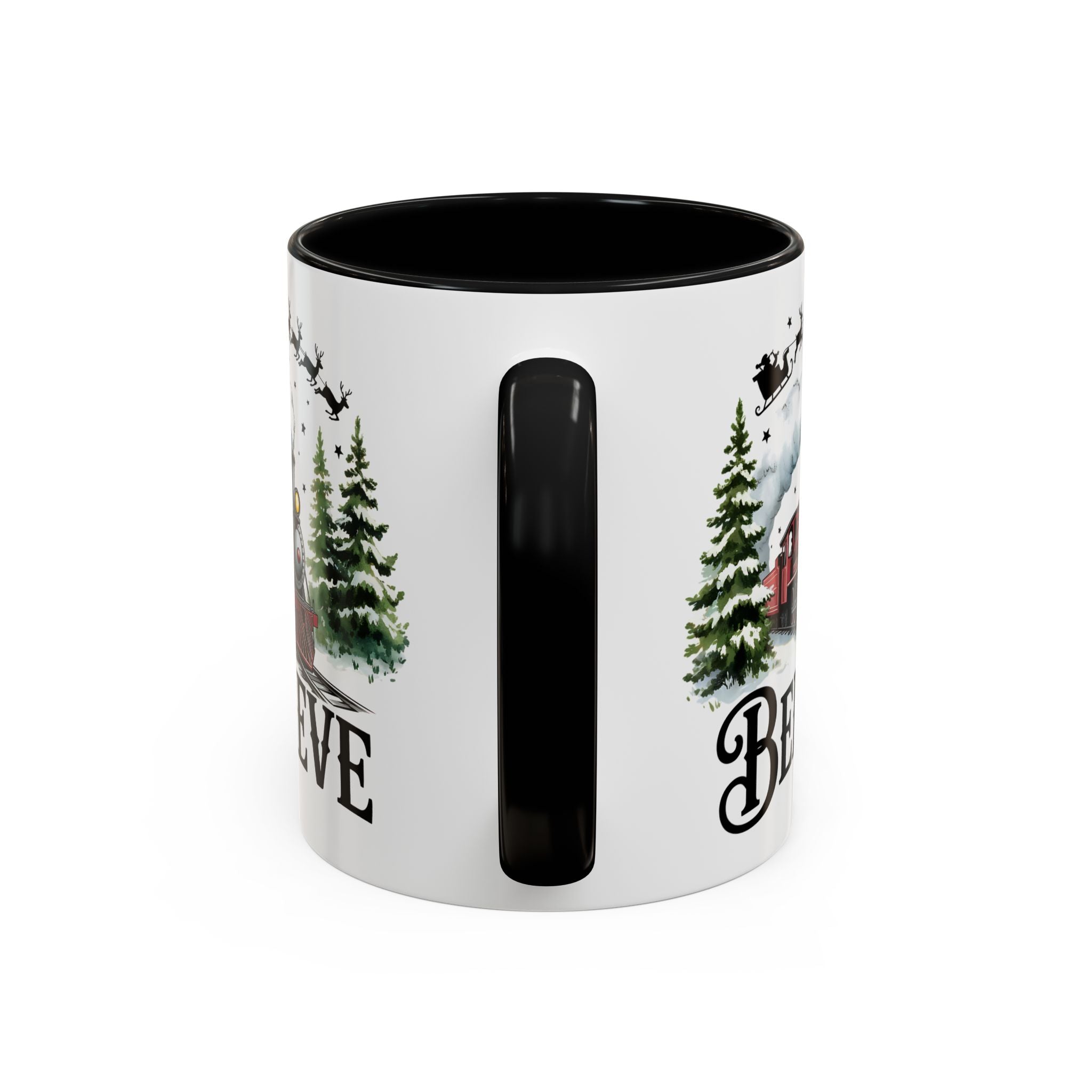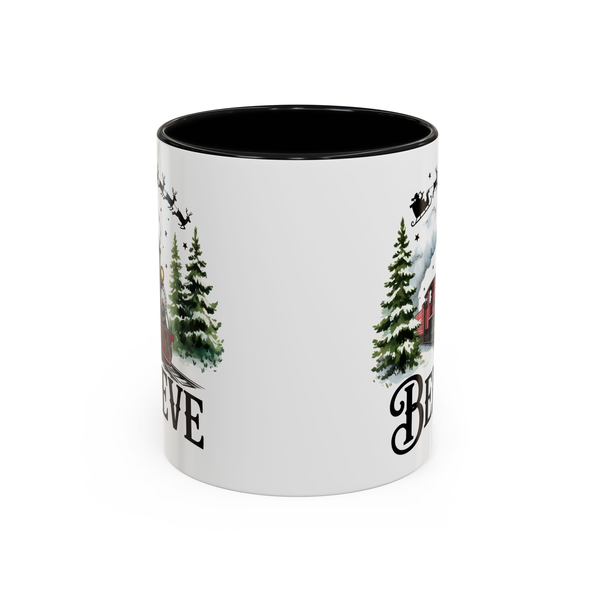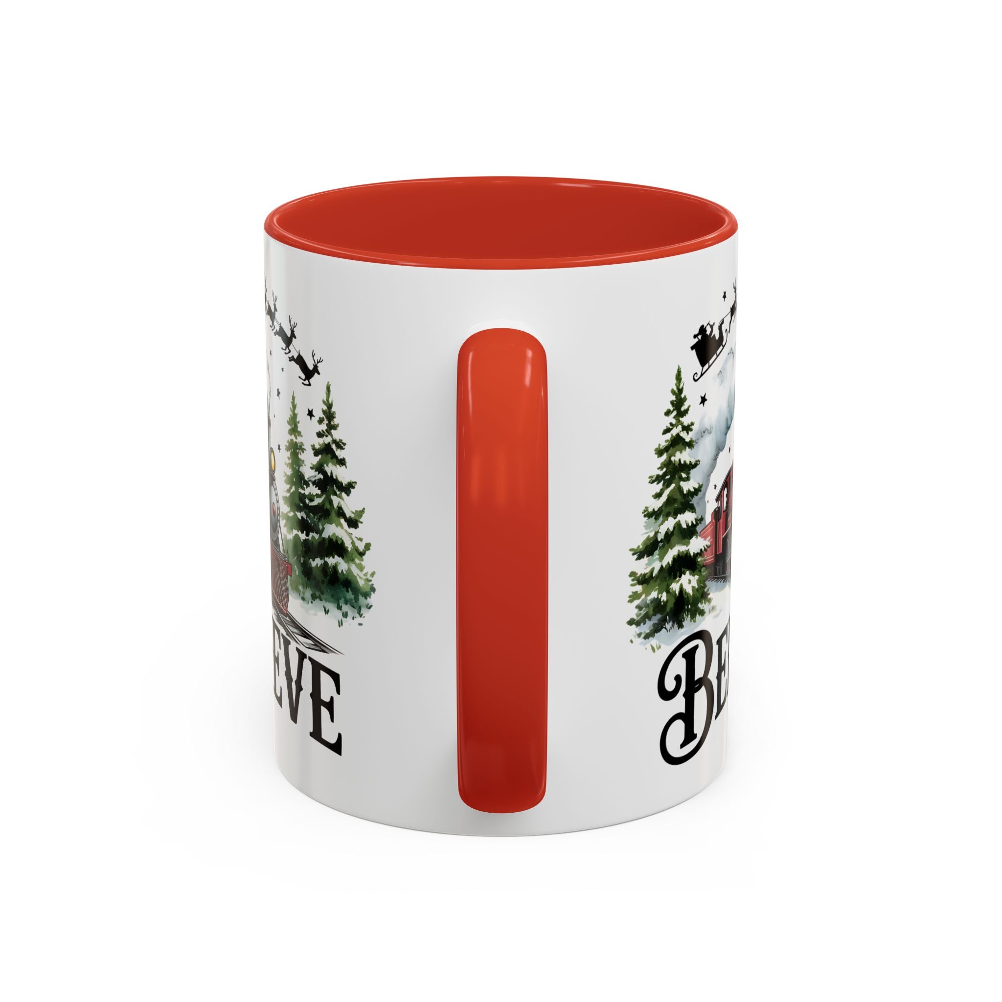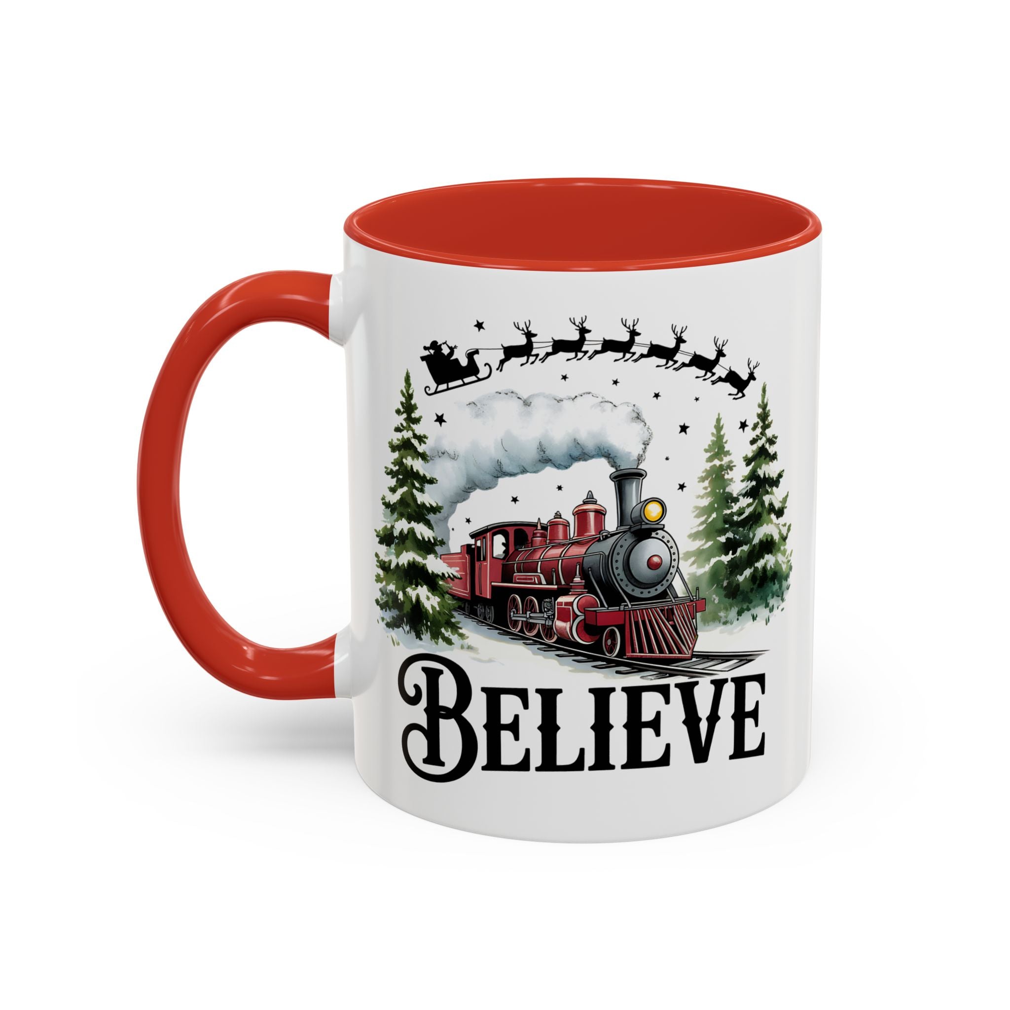 Christmas Believe Coffee Mug, Holiday Mug, Santa Train Mug, Winter Decor, Hot Cocoa Mug, Gift for Her