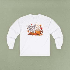 Cozy Autumn Long Sleeve Tee, Pumpkin Spice Shirt, Fall Fashion, Thanksgiving Gift, Cute Casual Wear, Seasonal Comfort