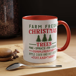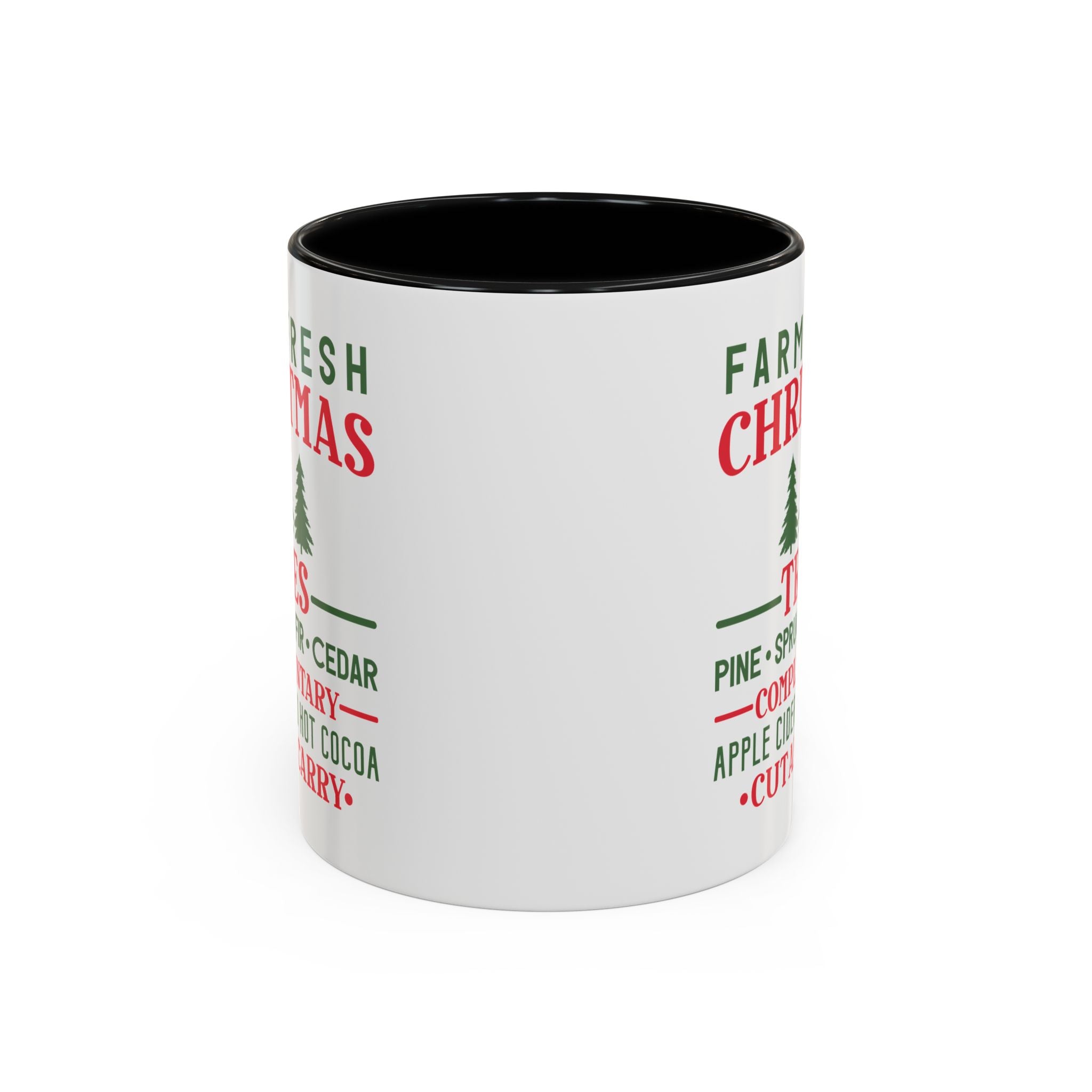 Farm Fresh Christmas Trees Mug, Holiday Coffee Cup, Rustic Kitchen Decor, Gift for Tree Lovers, Winter Beverage Tumbler