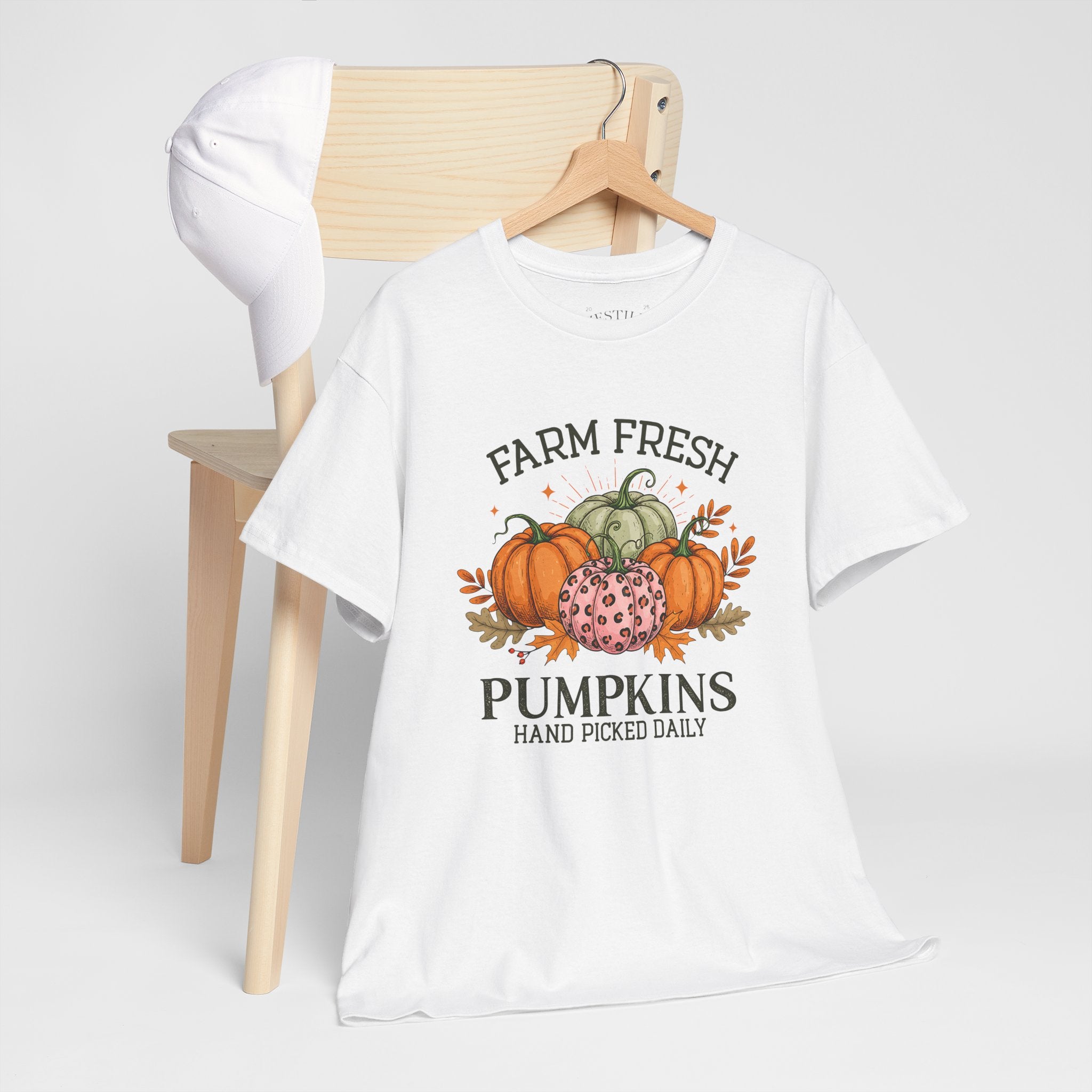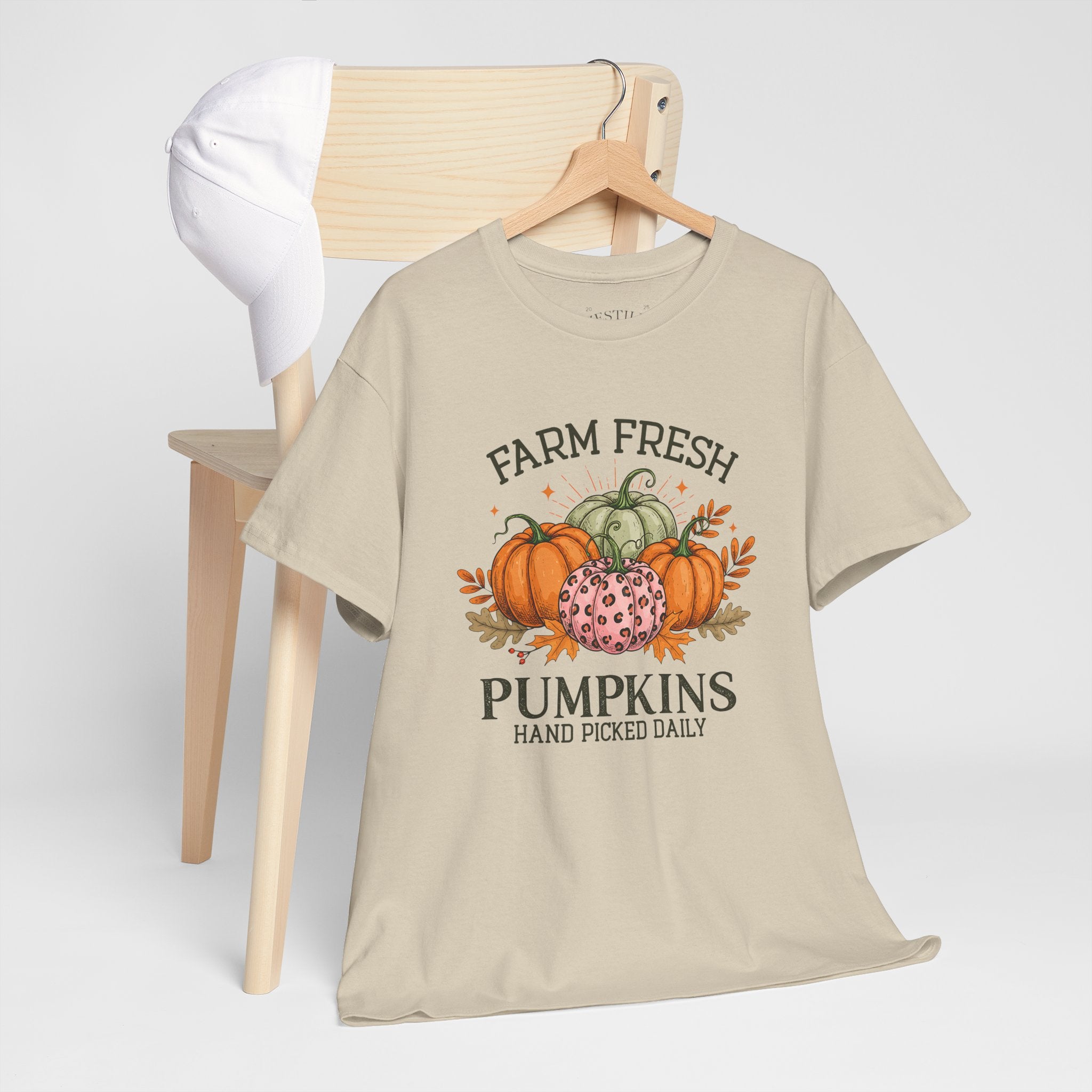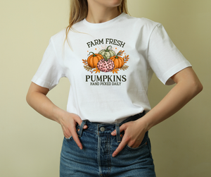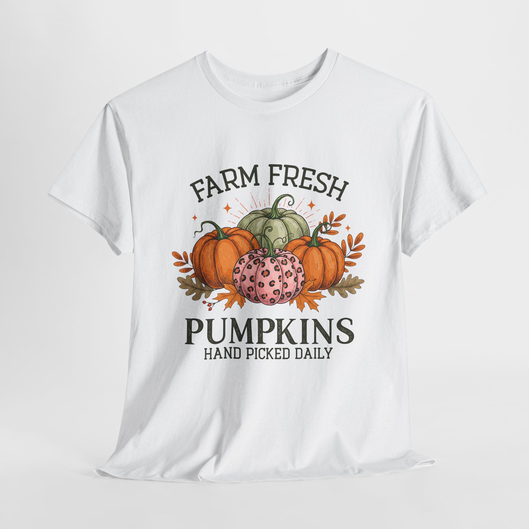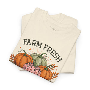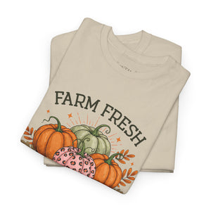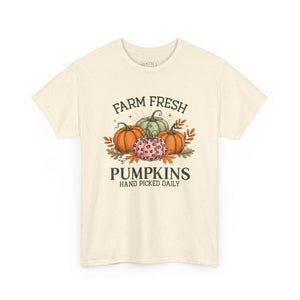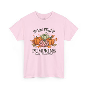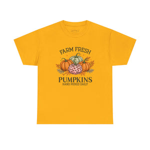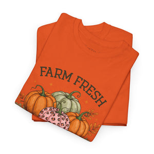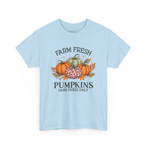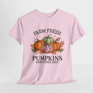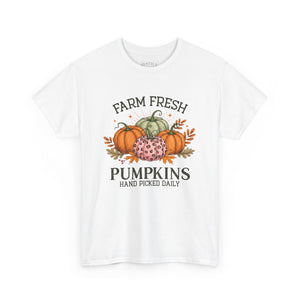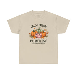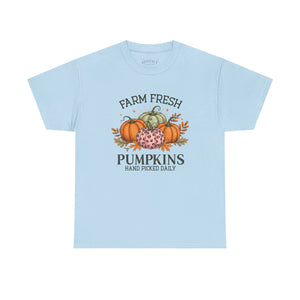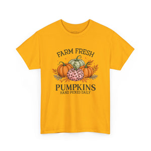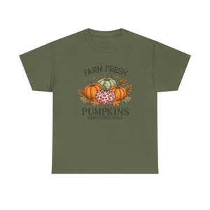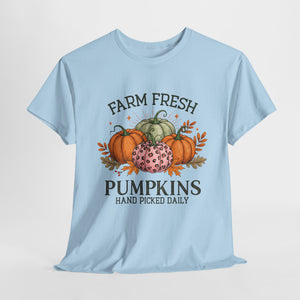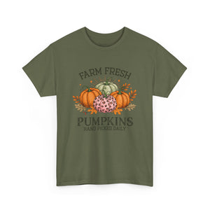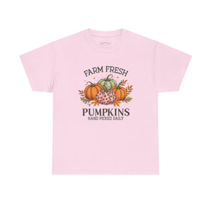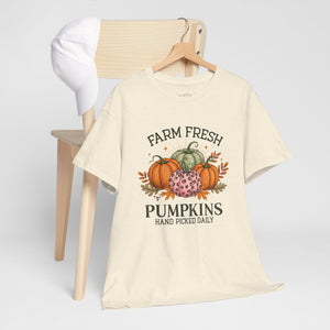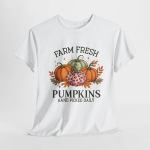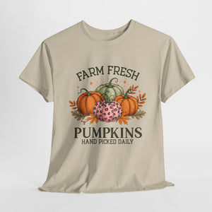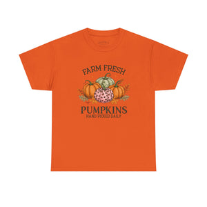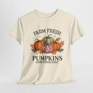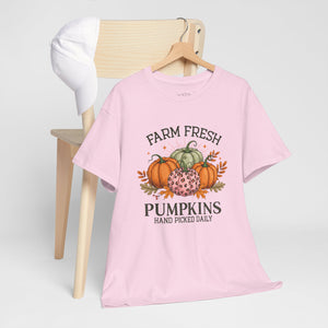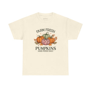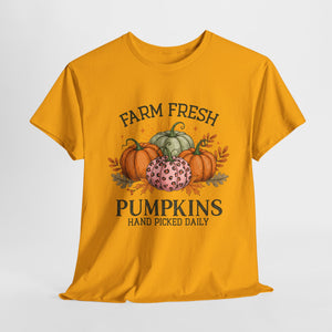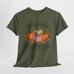 Farm Fresh Pumpkins Heavy Cotton Tee, Autumn T-Shirt, Fall Festival Shirt, Thanksgiving Apparel, Pumpkin Lover Gift