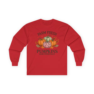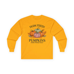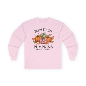 Farm Fresh Pumpkins Long Sleeve Tee | Fall Outfit, Thanksgiving Apparel, Cozy Gift, Autumn Style, Pumpkin Lover Tee