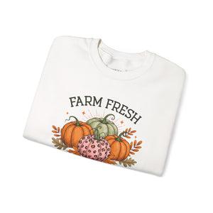 Embrace the cozy vibe of autumn with this charming Heavy Blend™ Crewneck Sweatshirt. Featuring a delightful 'Farm Fresh Pumpkins' design, this sweatshirt brings a touch of seasonal warmth and style. Perfect for those chilly days spent at pumpkin patches, fall festivals, or cozy nights by the fire, it’s an ideal addition to your autumn wardrobe. The classic fit and soft fabric make it suitable for anyone looking to add a stylish yet comfortable piece to their attire, whether you're relaxing at home or out with friends. This sweatshirt is a great gift for harvest season, Halloween, or Thanksgiving celebrations, appealing to both adults and families who cherish the beauty of fall.