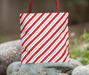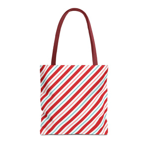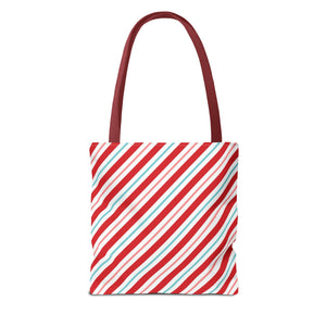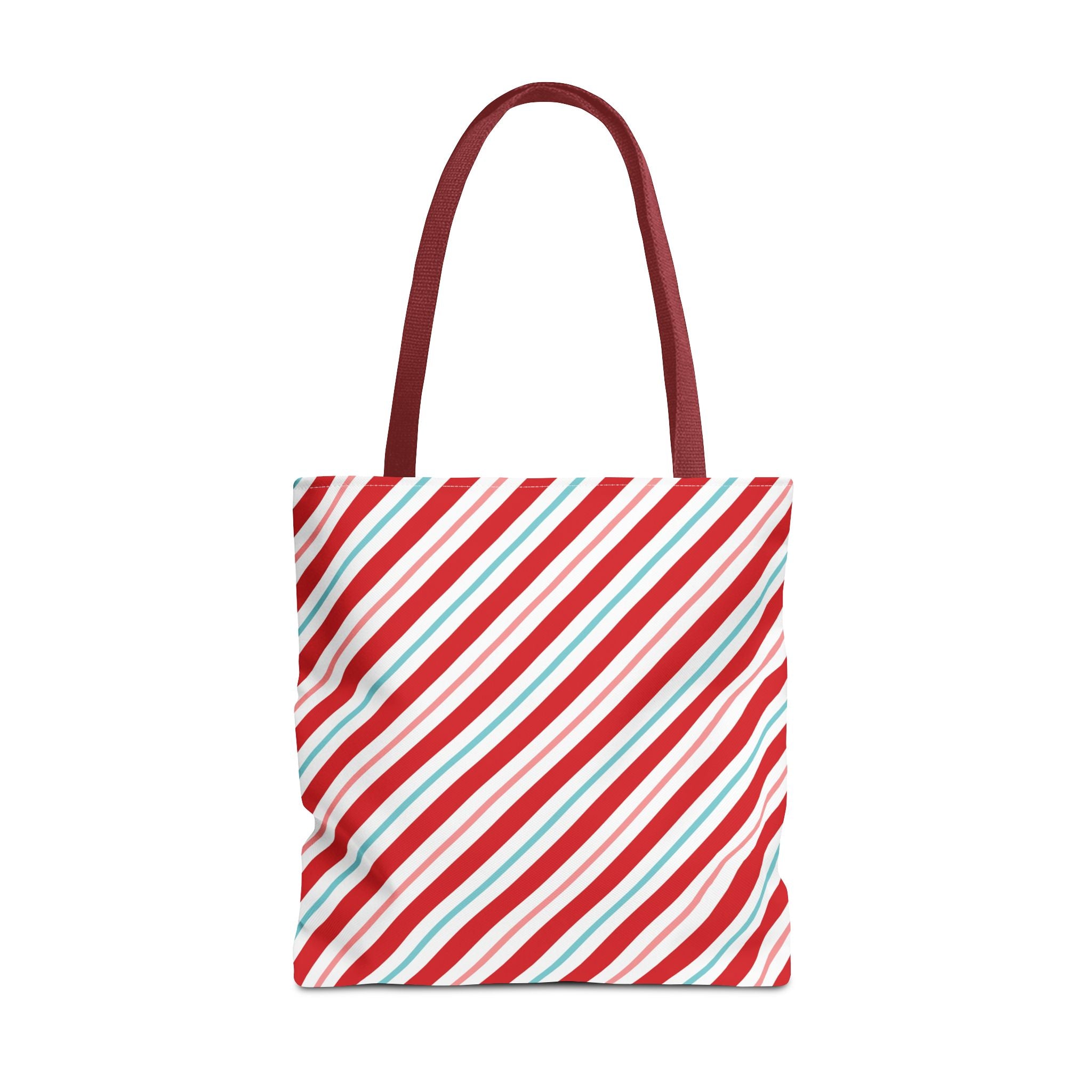 Festive Striped Candy Cane Tote Bag, Holiday Gift, Eco-Friendly Shopping Bag, Christmas Accessory, Reusable Gift Bag