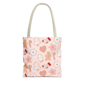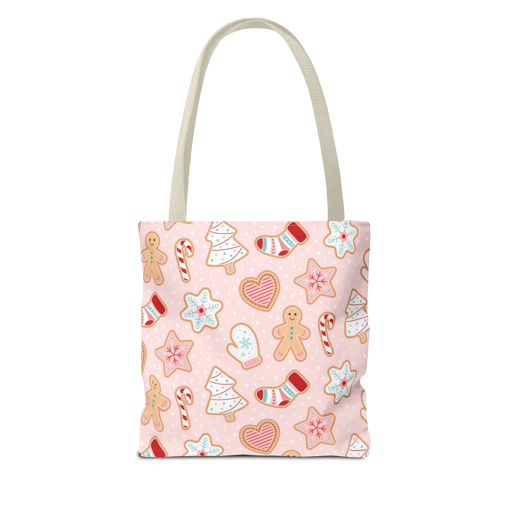 Embrace the festive spirit with this delightful Tote Bag. Perfect for carrying your holiday goodies, this bag features a playful design adorned with gingerbread cookies, candy canes, and cheerful ornaments, bringing a touch of joy wherever you go. Made with durable polyester, it’s designed for everyday use—ideal for shopping trips, holiday parties, or as a charming gift bag. It’s the perfect accessory for anyone who loves to celebrate the season, making it suitable for friends, families, and holiday enthusiasts alike. Great for Christmas, winter festivities, or a cozy gathering with loved ones!