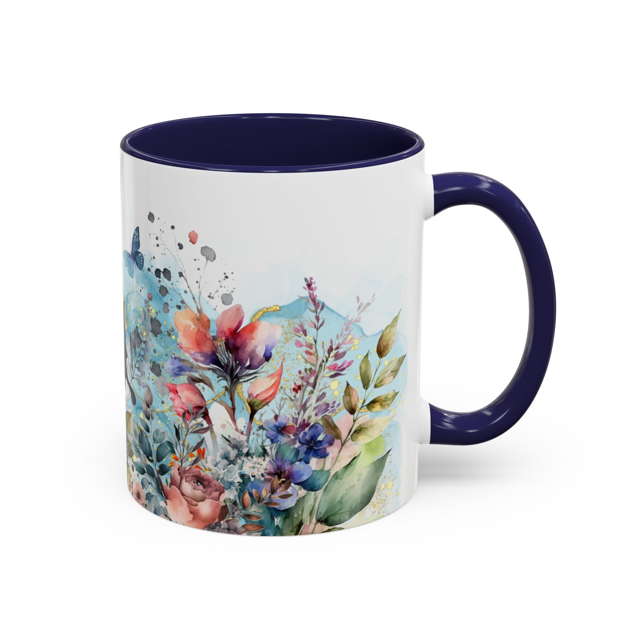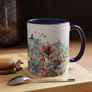Introducing a stunning Accent Coffee Mug, perfect for those who appreciate unique and artistic designs. This beautifully crafted mug features a vibrant floral and butterfly motif that brings a touch of nature indoors. Its glossy finish and eye-catching color contrast create a delightful experience every time you take a sip. Ideal for morning coffee rituals, afternoon tea breaks, or cozy evenings, this mug is a wonderful addition to any kitchen or office space. It's perfect for anyone who loves nature-inspired decor and enjoys sipping their favorite beverages in style. Great for gifting on occasions such as birthdays, Mother’s Day, or holidays like Christmas.
