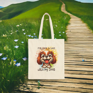 This Fur-Ever In Love With My Dog Tote Bag exudes a cute and playful vibe, perfect for dog lovers who want to show their love for their furry friends. It is a versatile accessory that can be used for grocery shopping, beach trips, or carrying everyday essentials. Ideal for dog owners, animal lovers, and pet enthusiasts. Relevant for holidays like National Dog Day and occasions like pet adoption events.