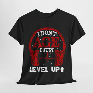 Level up your gamer style with this 'I Don't Age I Just Level Up' Heavy Cotton Tee. Perfect for gamers and gaming enthusiasts, this tee exudes a fun and youthful vibe while offering year-round comfort and durability. It's ideal for casual wear or as a statement piece for gaming events and conventions.