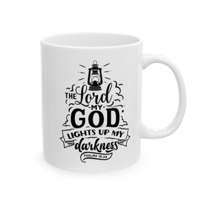 Warm-up with a nice cuppa out of this customized ceramic coffee mug. It’s BPA and Lead-free, microwave & dishwasher-safe, and made of white, durable ceramic in an 11-ounce size. Thanks to the advanced printing tech, your designs come to life with incredibly vivid colors – the perfect gift for coffee, tea, and chocolate lovers. "The Lord my God lights up my darkeness!" Psalms 18:28