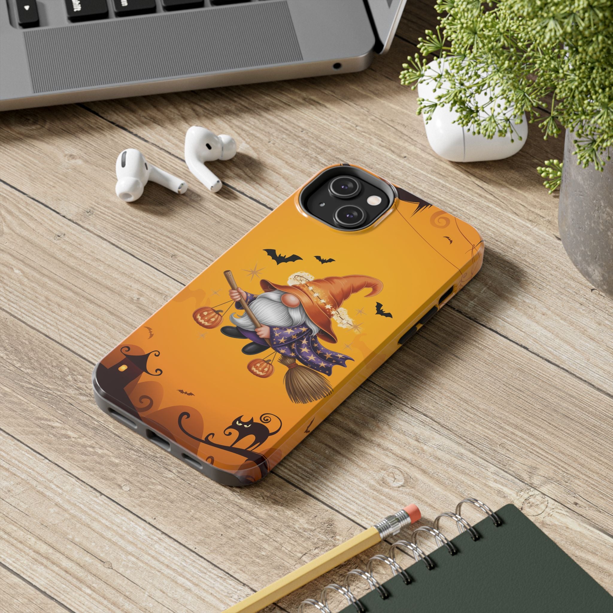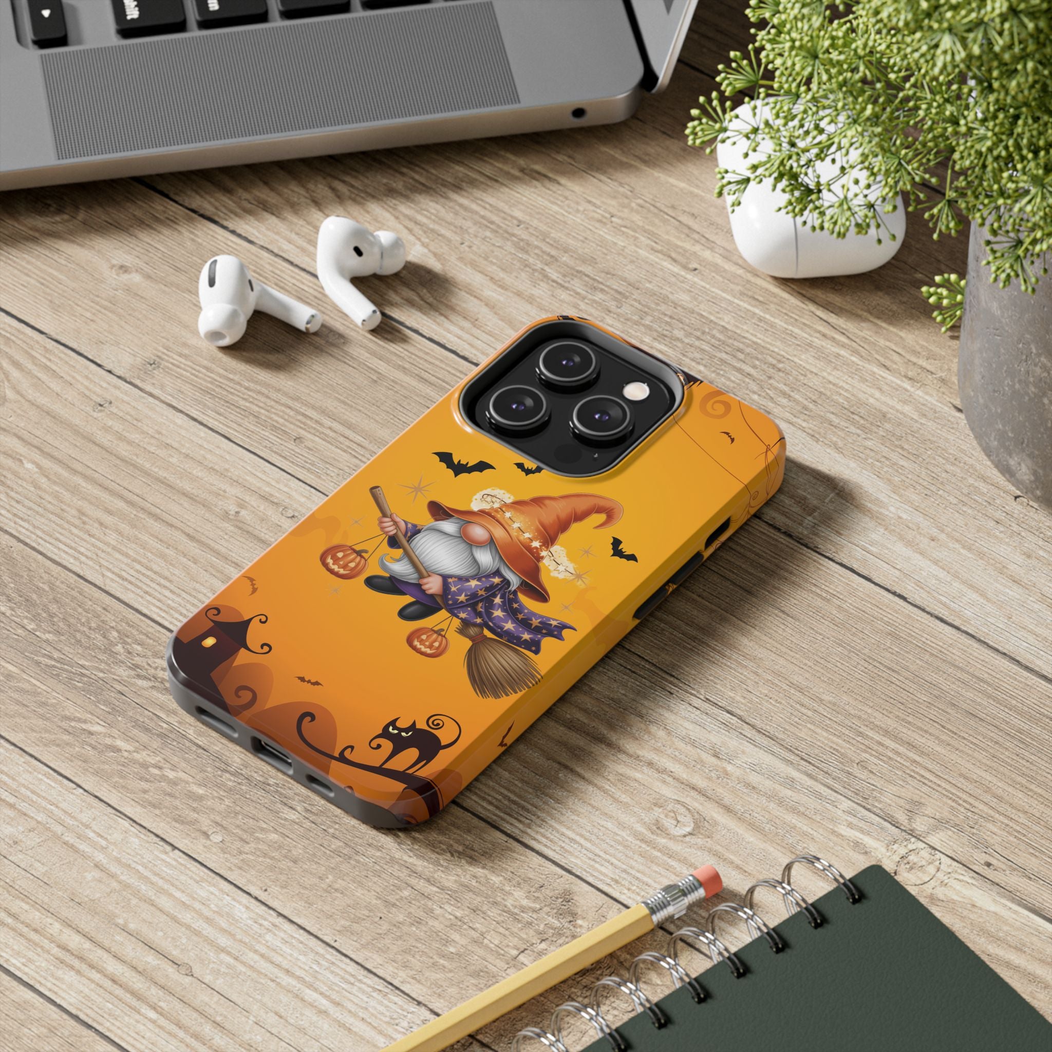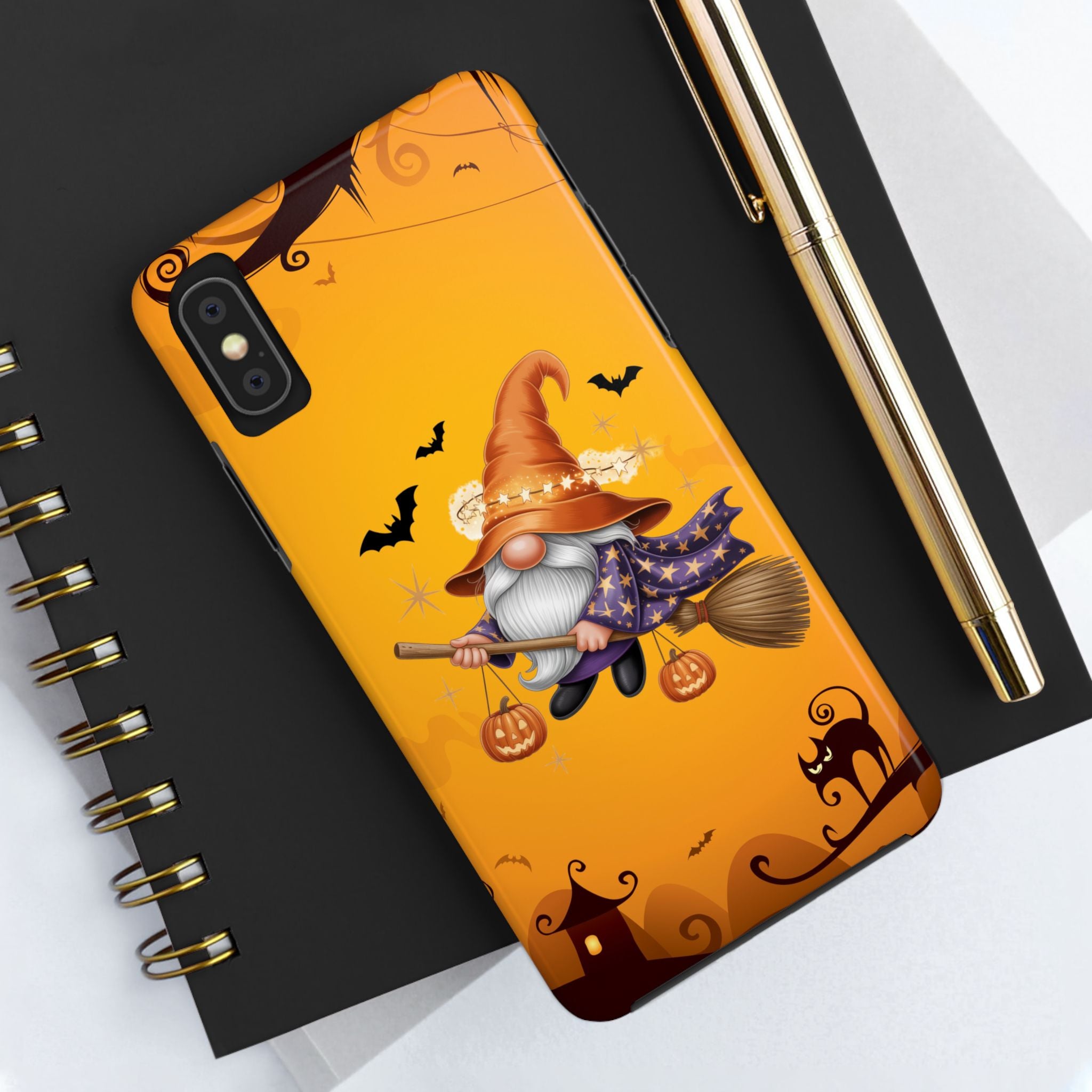 Halloween Gnome Phone Case, Tough Mobile Cover, Fall Decor, Witchy Accessories, Gift for Halloween Lovers, Pumpkin and Cat Design
