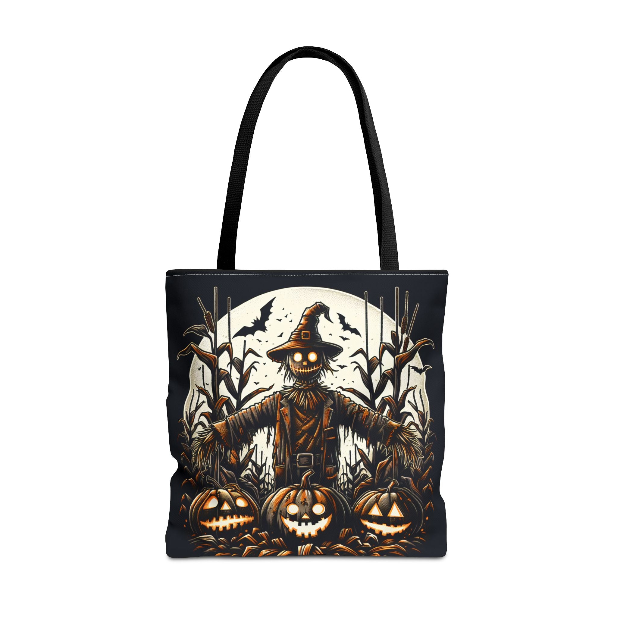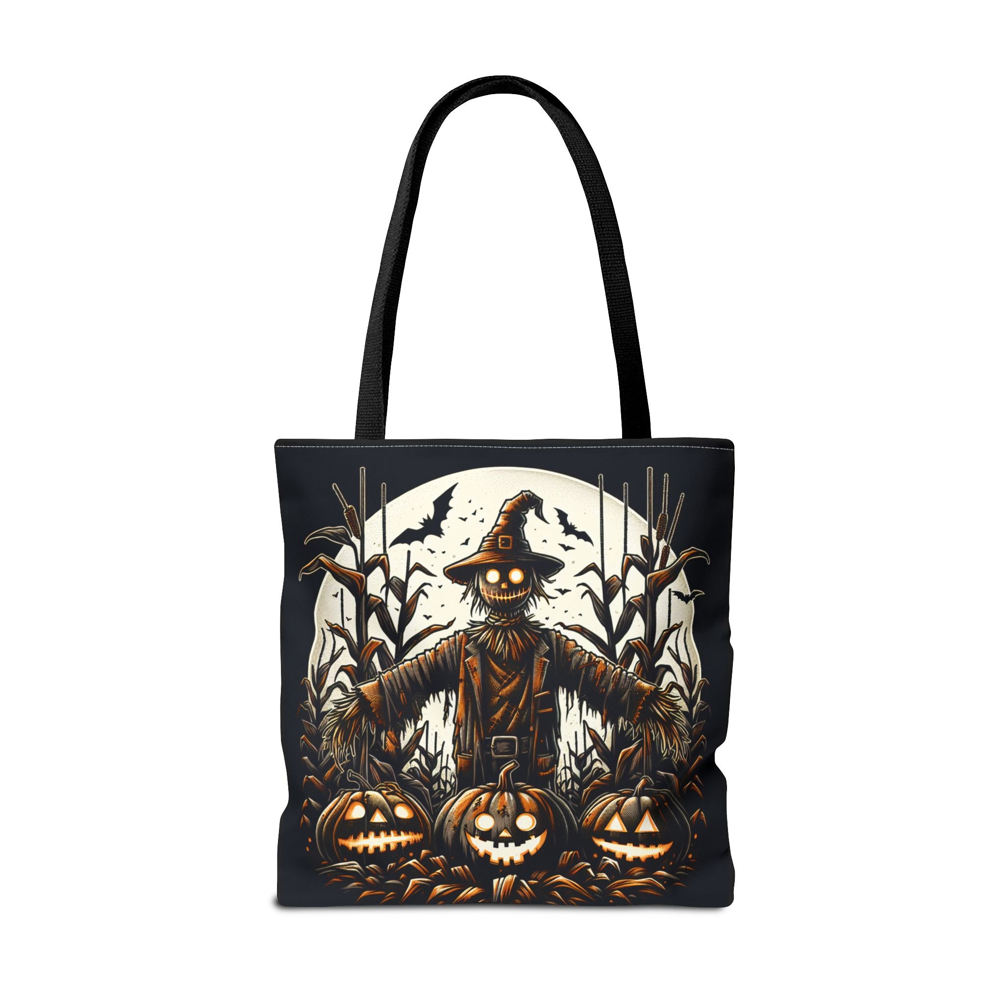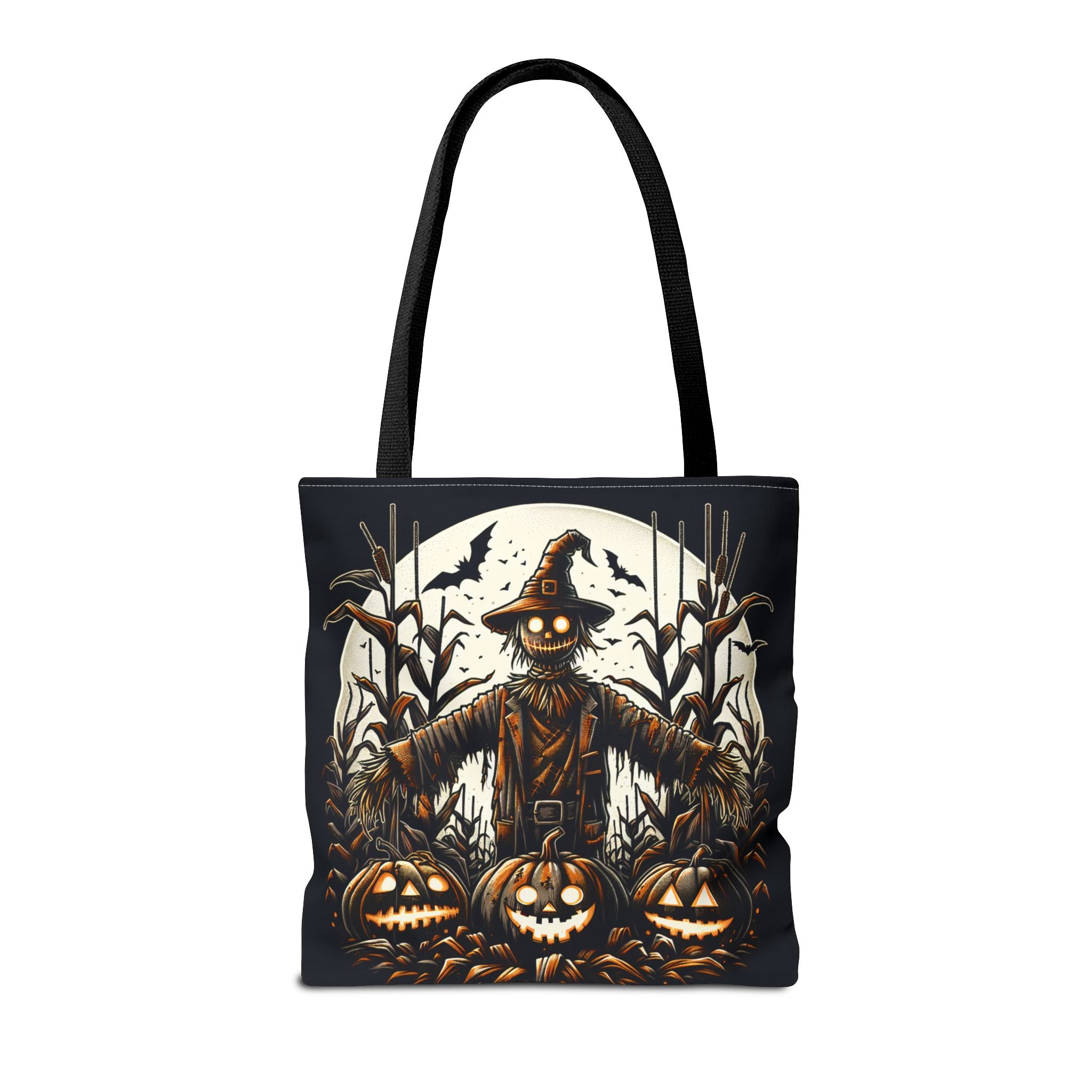 This stylish tote bag, perfect for everyday use, boasts a unique design that captures the essence of autumn and Halloween. With its vibrant graphics featuring a whimsical scarecrow and spooky pumpkins, it's an eye-catching accessory that brings warmth and a playful vibe to any outfit. Ideal for those who appreciate seasonal styles or are looking to make a statement while running errands, this tote is versatile enough for casual outings, festive gatherings, or even as a gift for friends and family. Celebrate various occasions, from Halloween parties to fall festivals, with this artistic piece that embodies the spirit of the season.