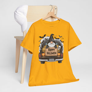 Halloween Themed Heavy Cotton Tee, Spooky Tee, Fall Fashion, Halloween Gnome T-Shirt, Gift for Her, Halloween Party Wear