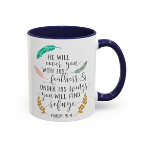 He Will Cover You With His Feathers Accent Coffee Mug