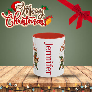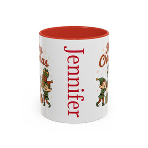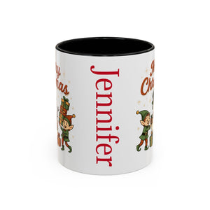 Holiday Coffee Mug, Cute Elf Illustration (Personalized, 11oz)