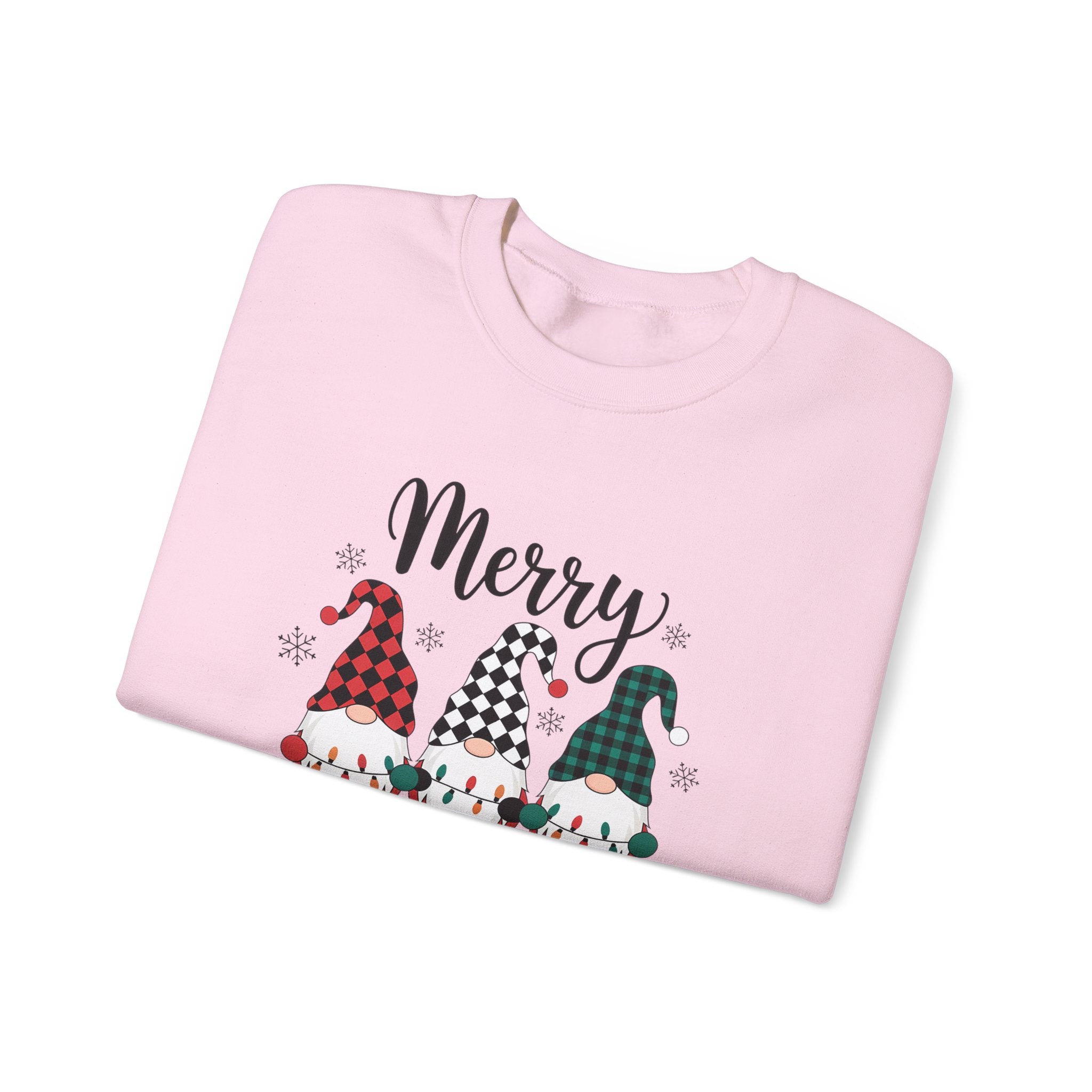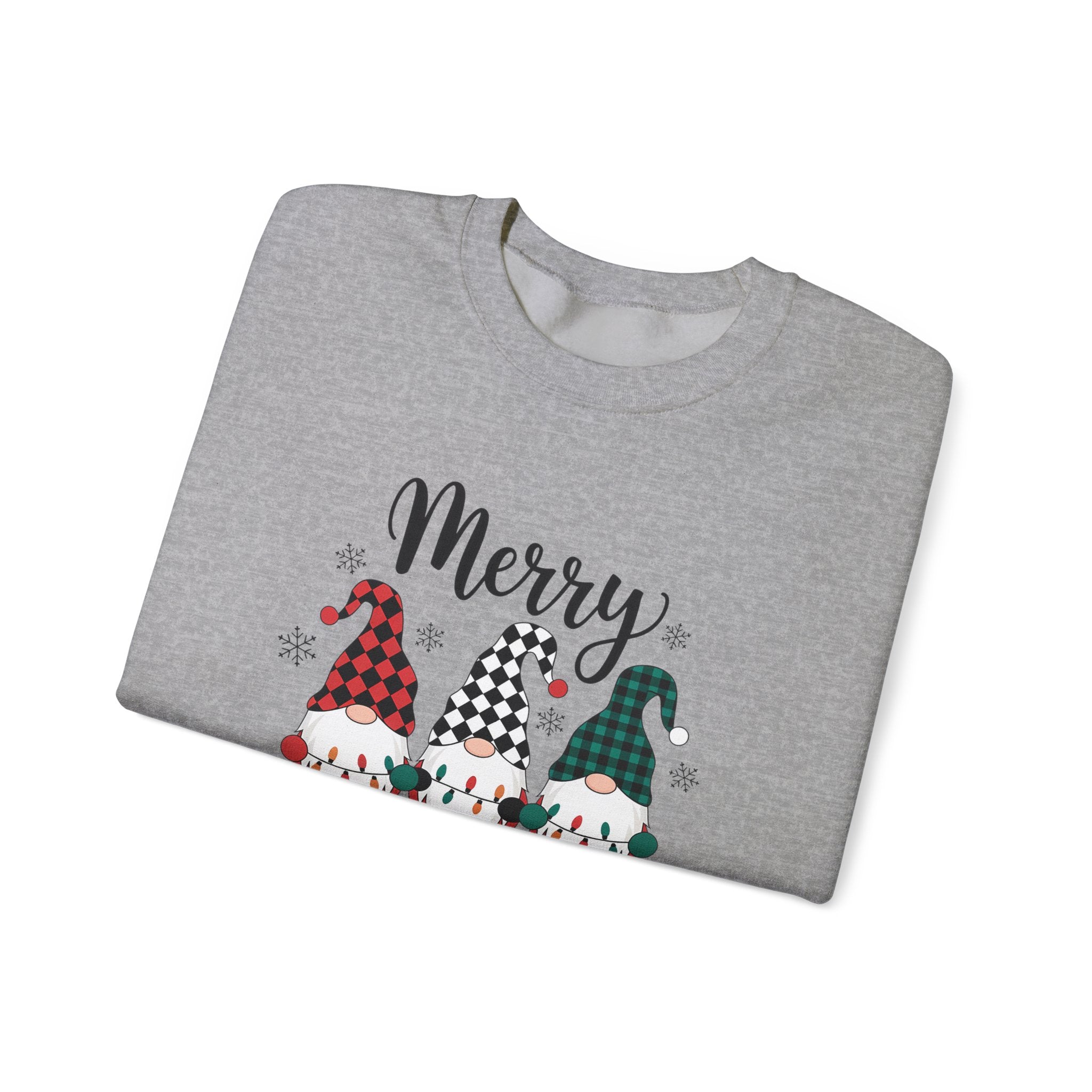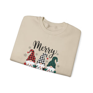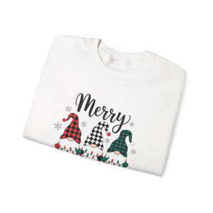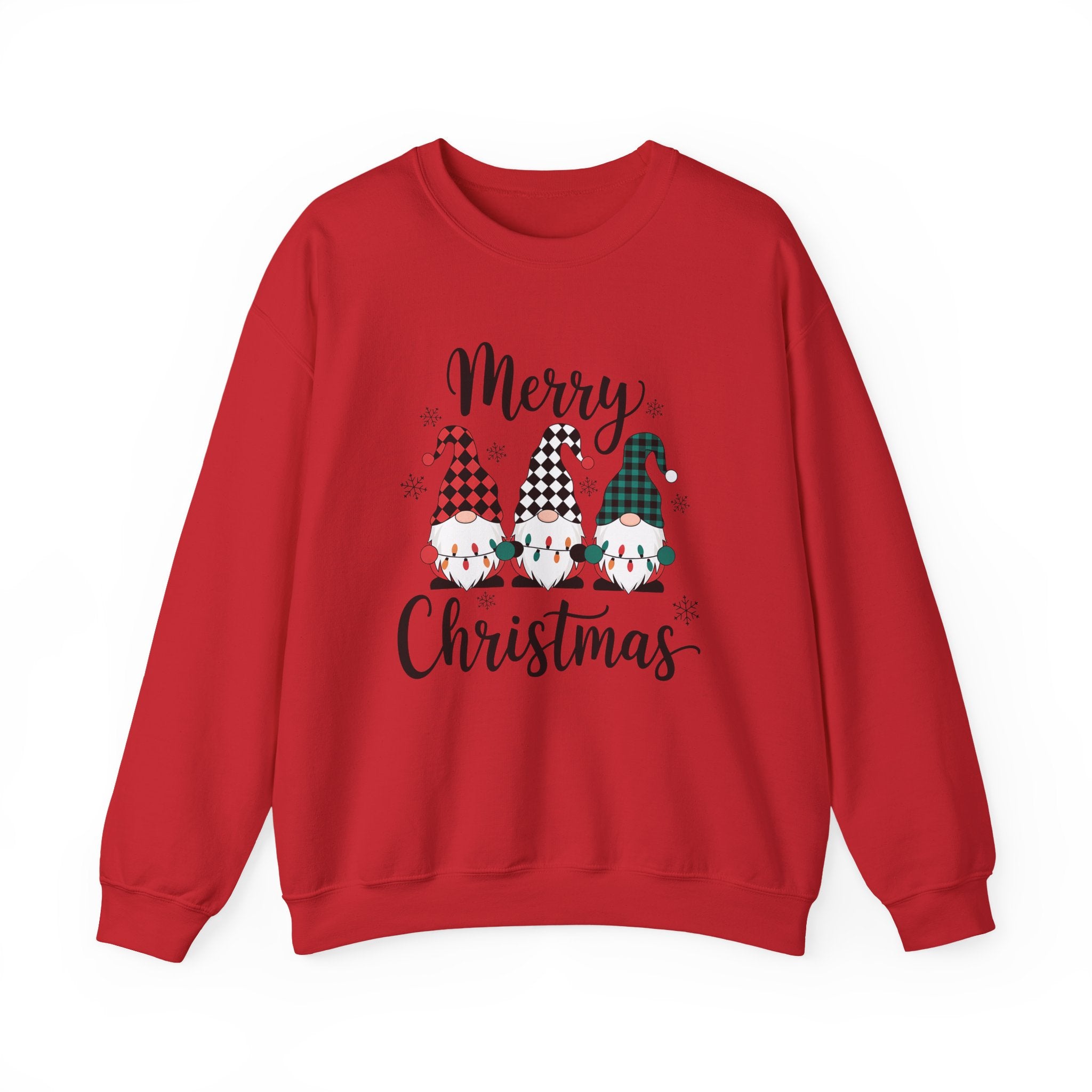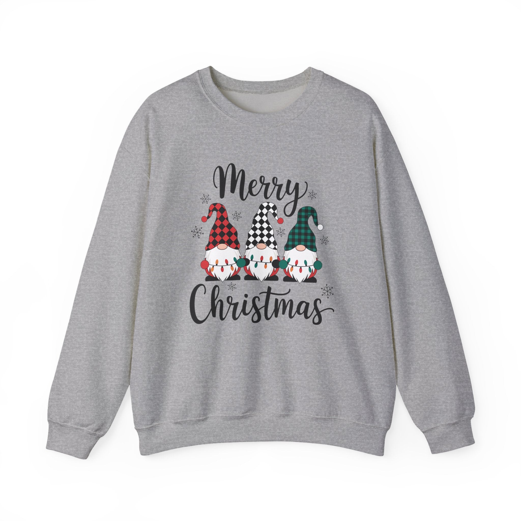 Embrace the festive spirit with this cozy Heavy Blend™ Crewneck Sweatshirt! Perfect for chilly winter days, this sweatshirt instantly elevates your holiday style with its charming 'Merry Christmas' design featuring adorable holiday gnomes. Picture yourself snuggling up by the fireplace or enjoying a holiday gathering in this comfortable and stylish piece. Ideal for anyone looking to spread cheer during the Christmas season, it's also a thoughtful gift for friends and family. Wear it casually, layer it with your favorite outerwear, or pair it with holiday-themed accessories for a complete look. This sweatshirt is not just an outfit but a celebration of togetherness, warmth, and holiday joy, making it a must-have for Christmas parties, gift exchanges, or simply lounging at home with loved ones.