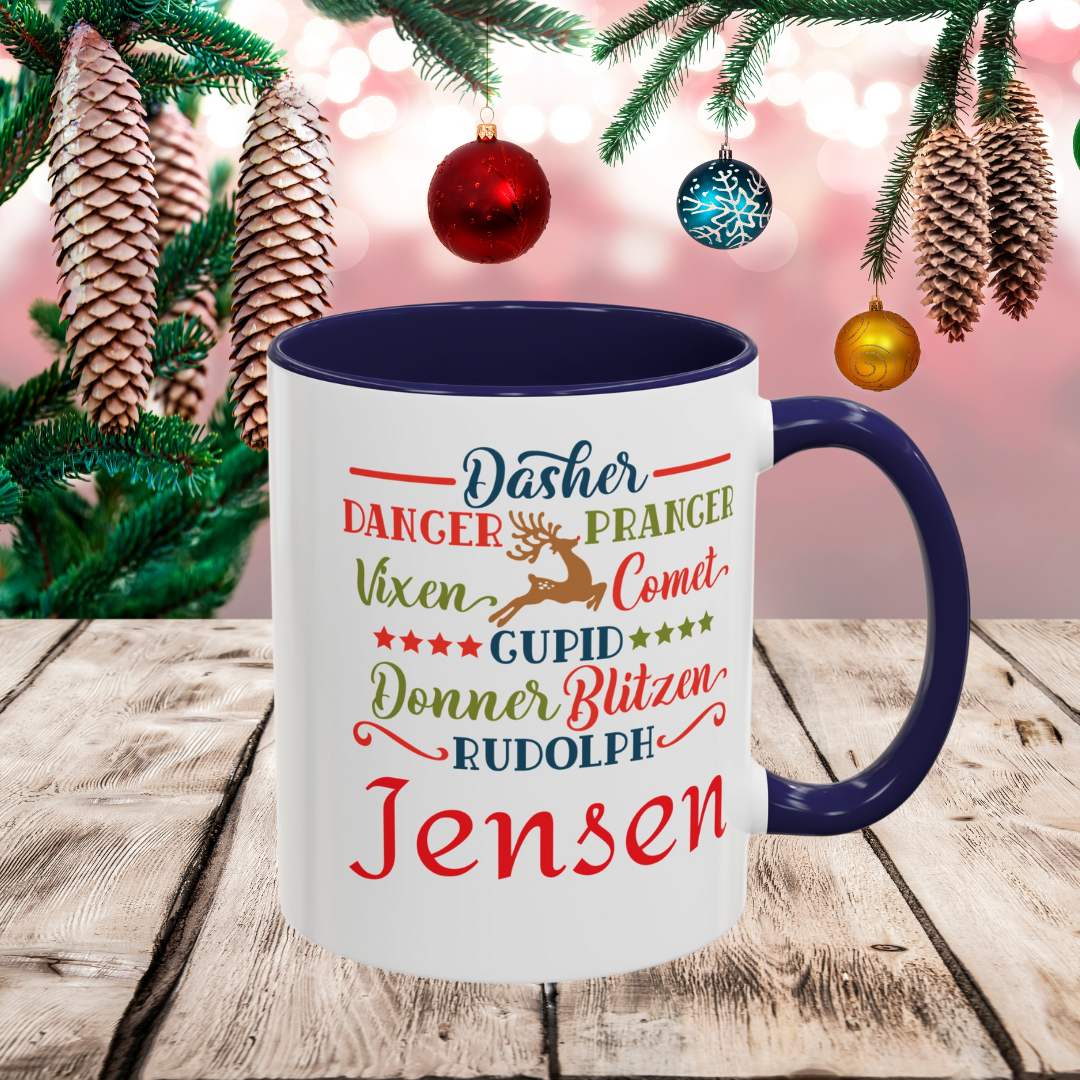 Personalized Christmas Coffee Mug | Festive Accent Mug for Holiday Cheer | Great Gift for Santa Lovers & Holiday Parties, Reindeer