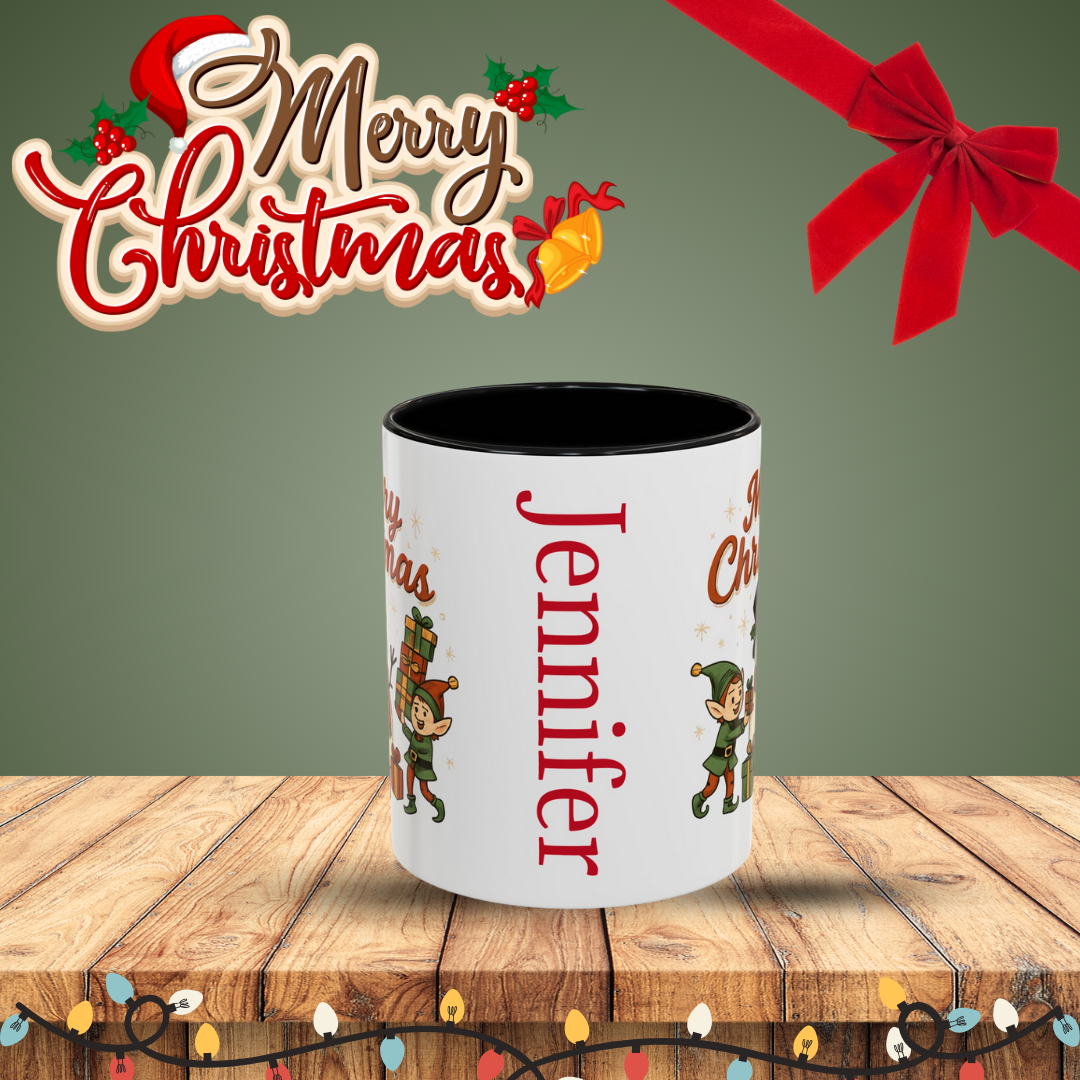 Personalized Christmas Coffee Mug | Festive Holiday Drinkware, Gift for Him/Her, Cute Elf Design, Seasonal Home Decor, Merry Christmas Mug