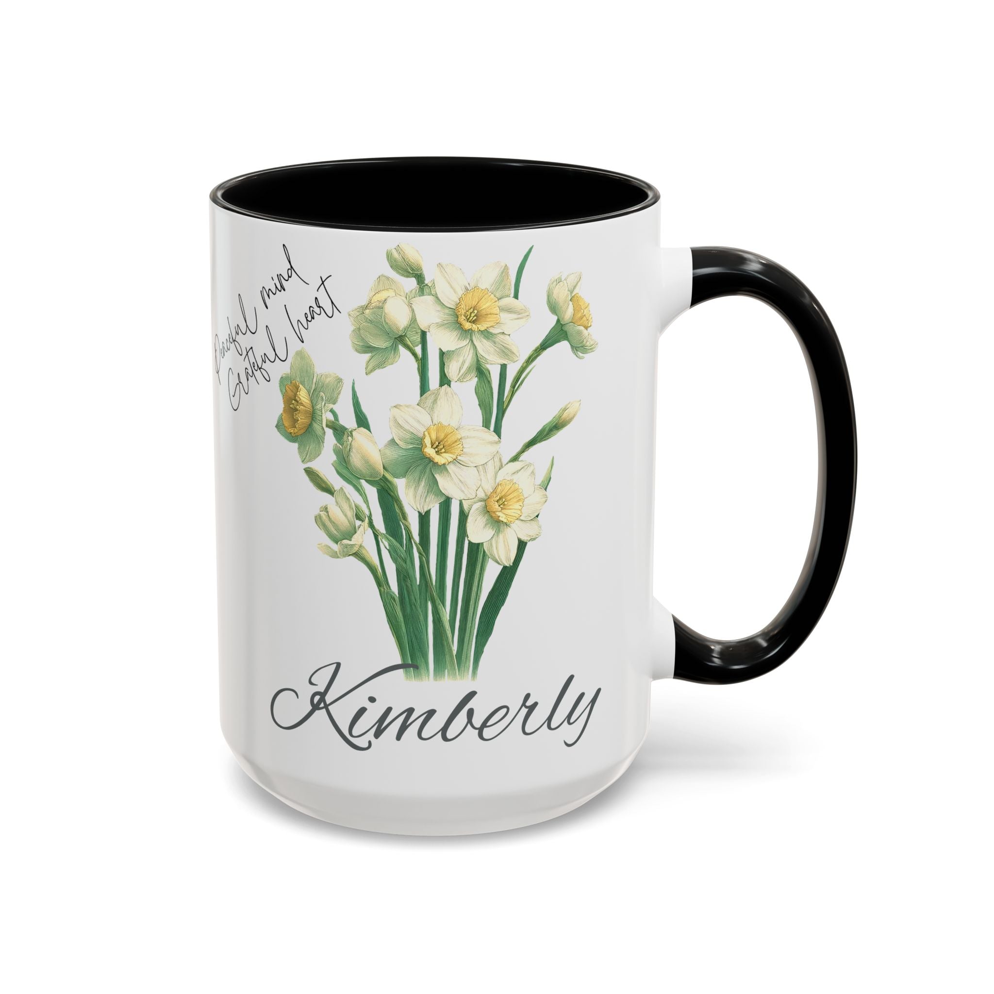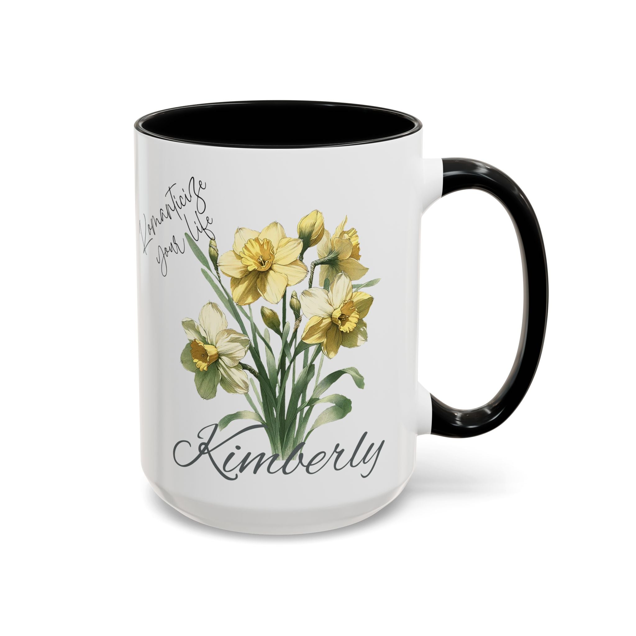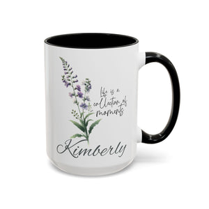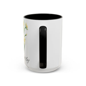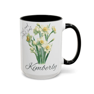 Personalized name birth month flower coffee mug, perfect gift for holidays, birthdays, or any occasion. The vibrant colors and eye-catching color contrast provide a touch of personalization and warmth to your morning routine. Ideal for coffee lovers and anyone who enjoys a customized touch to their everyday items. Suitable for microwave and dishwasher use.