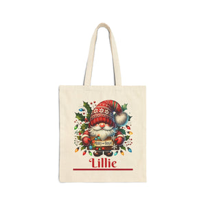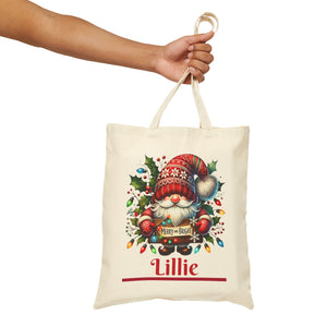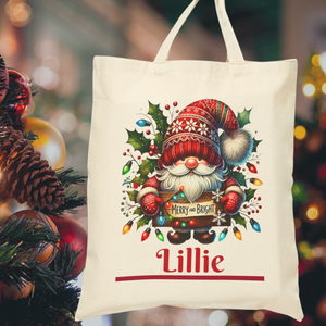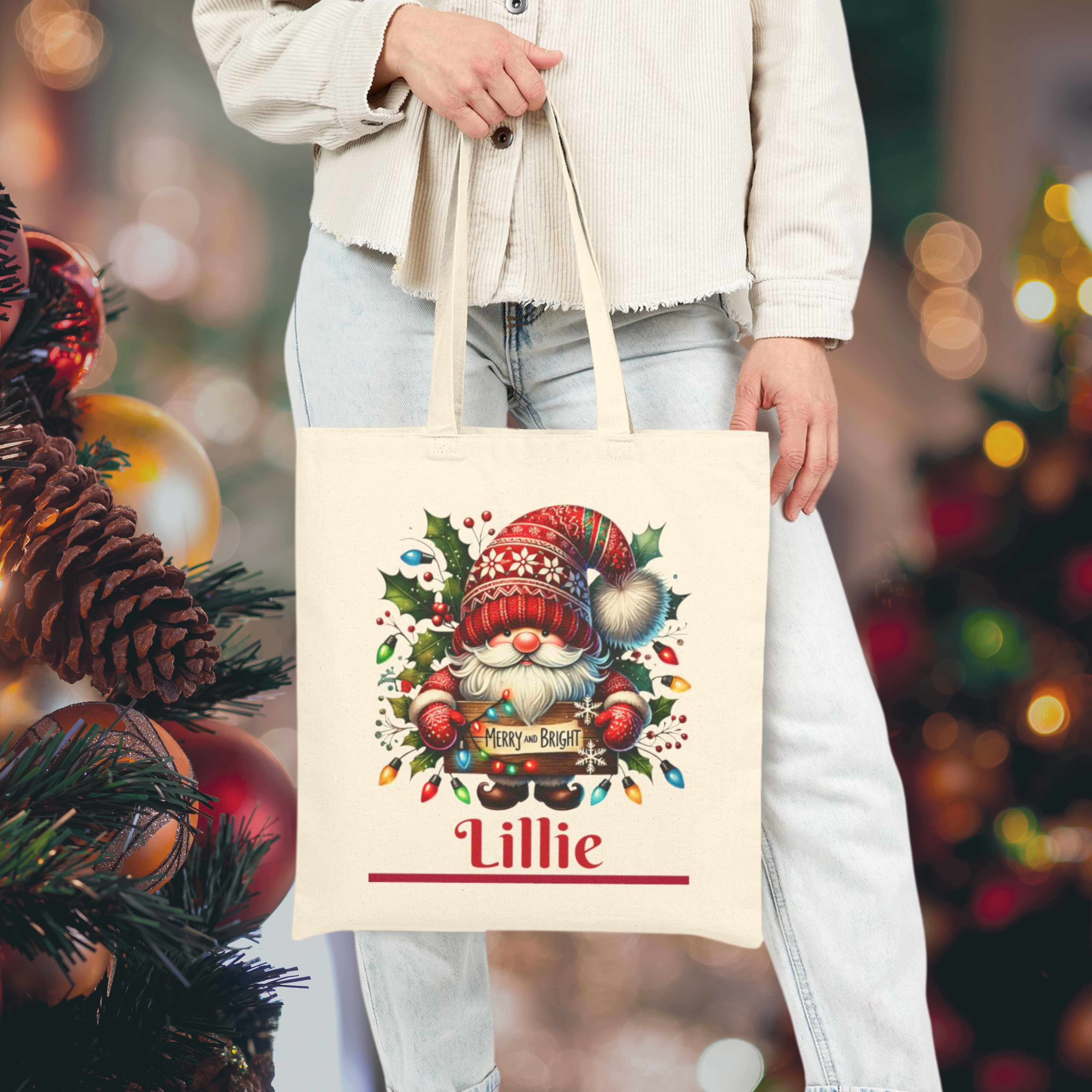 Personalized Santa Gnome Tote Bag, Holiday Shopping Bag, Christmas Gift Bag, Reusable Eco-Friendly Bag, Festive Canvas Tote