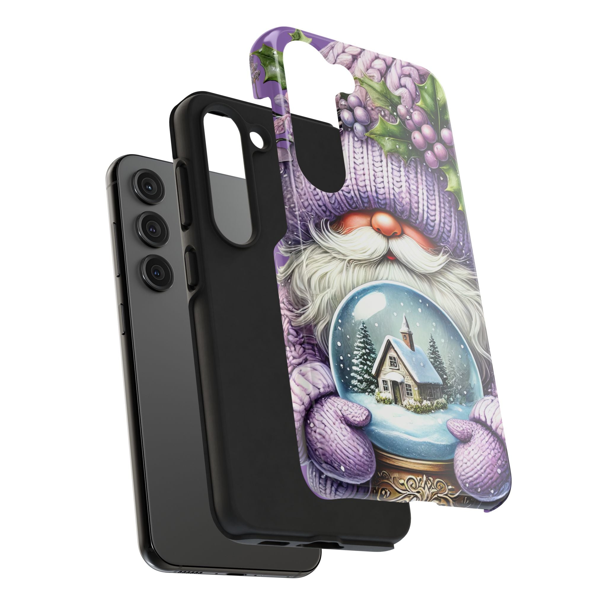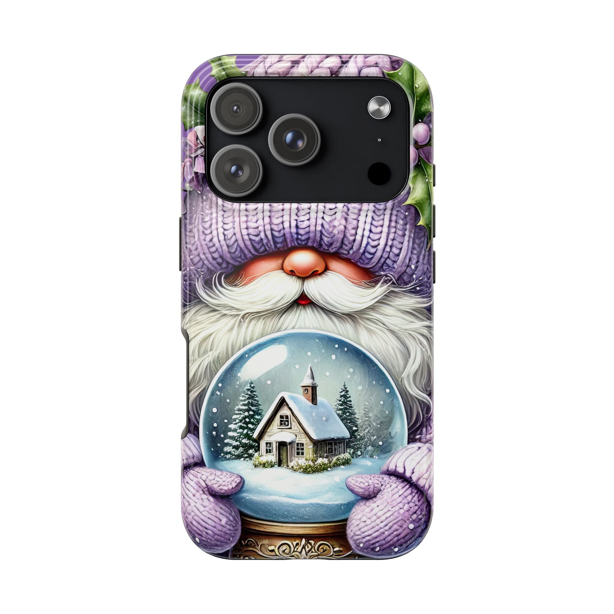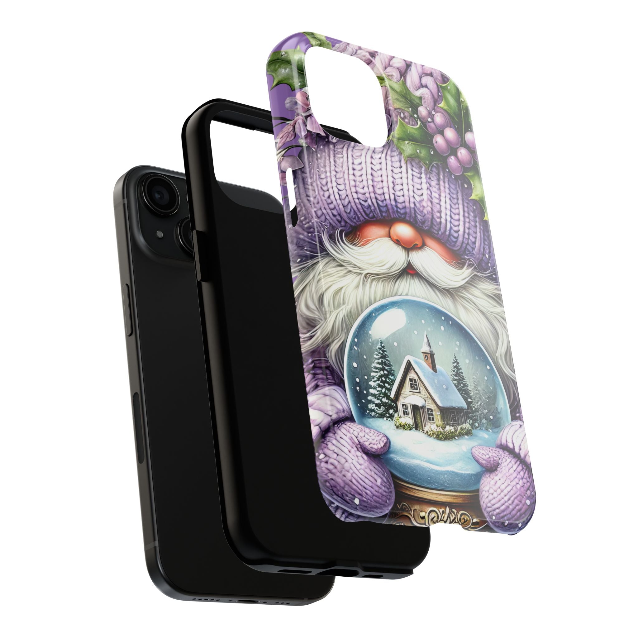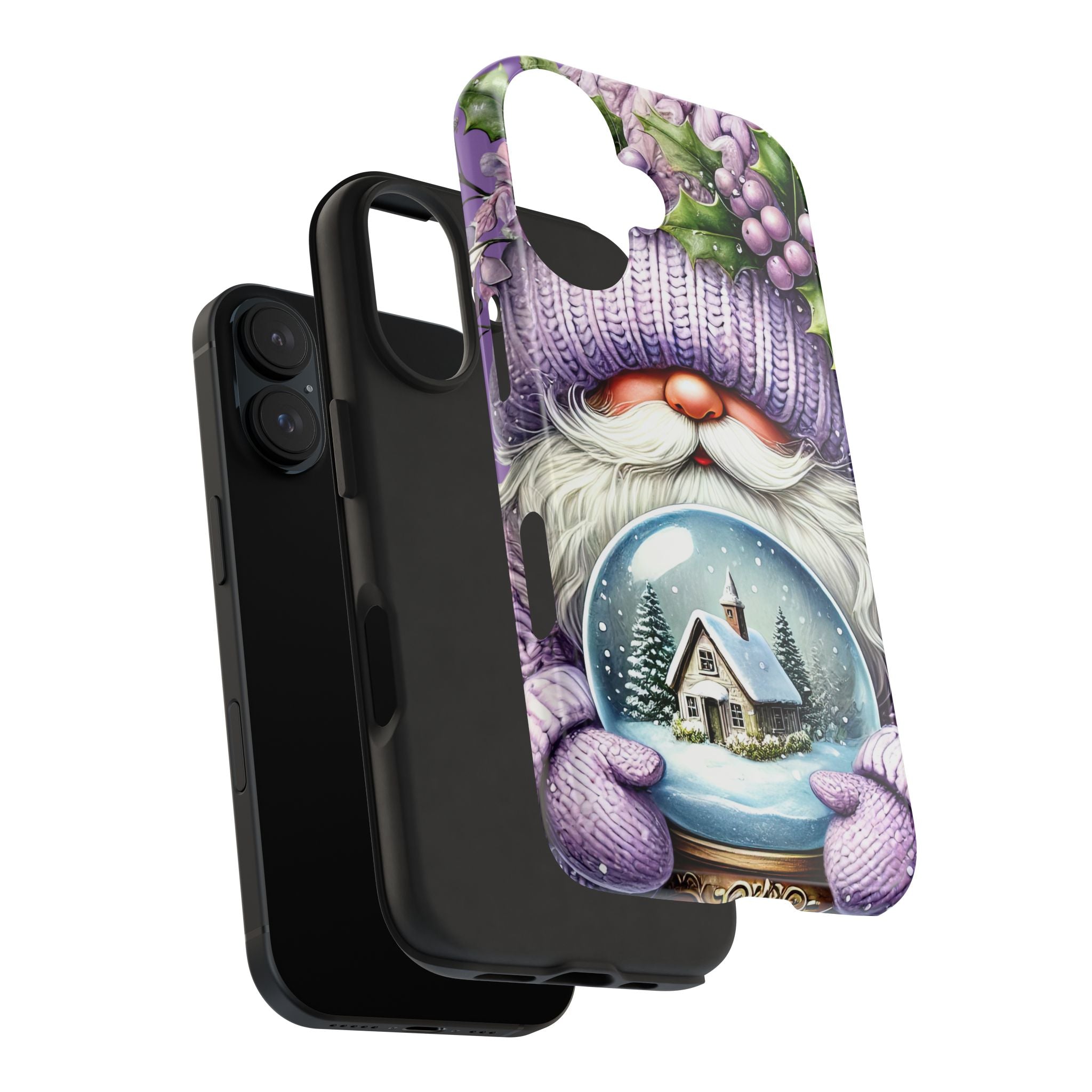 Phone Case Christmas Gnome Purple Snow Globe Holiday Protective Cover iPhone And Samsung Tough Case Impact Resistant