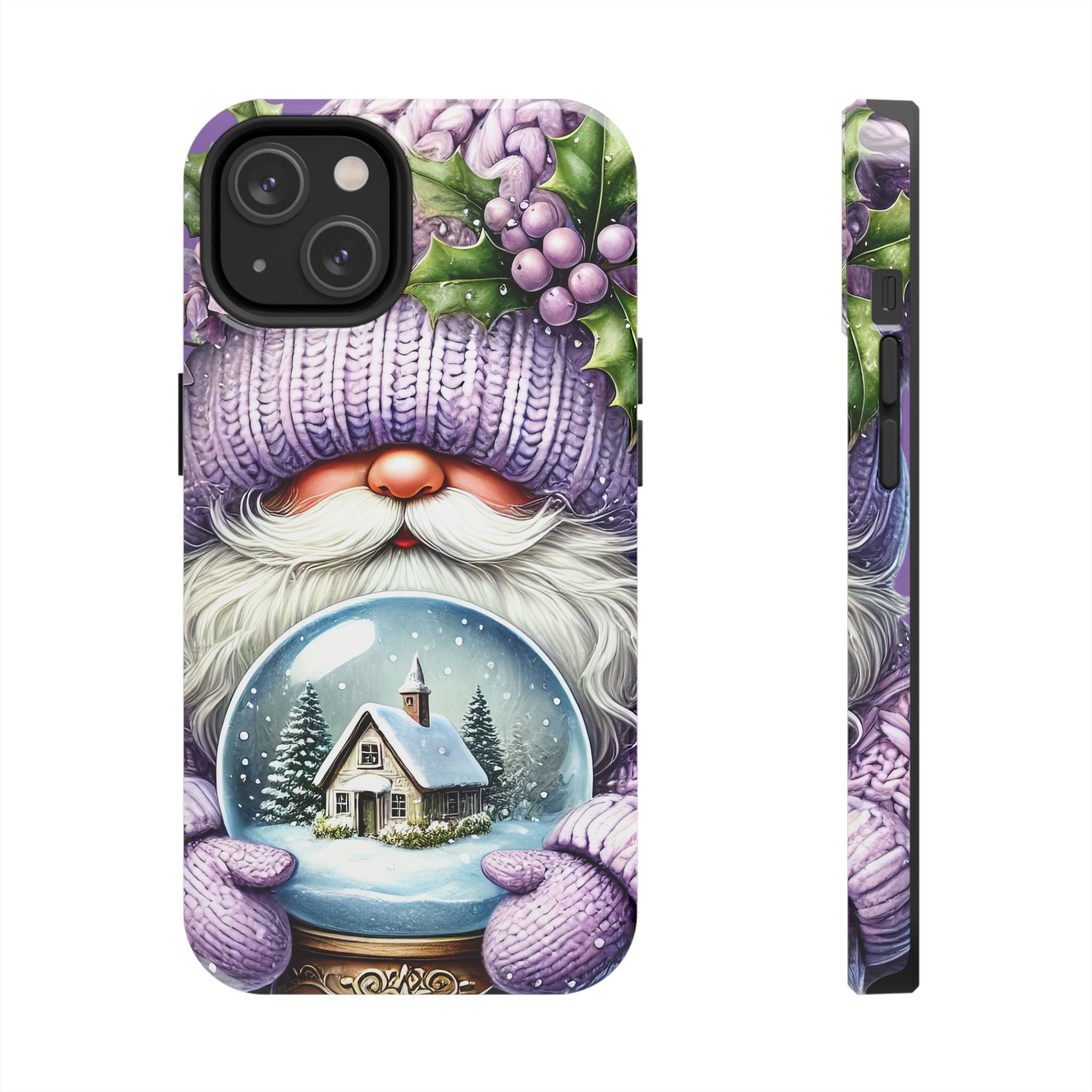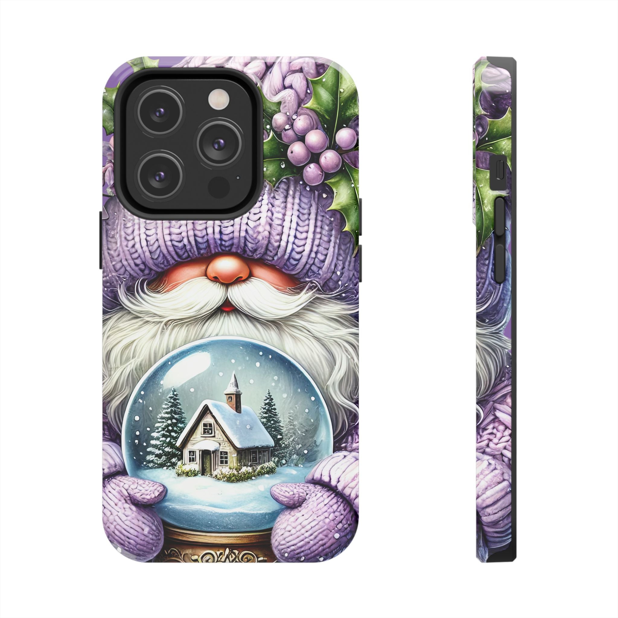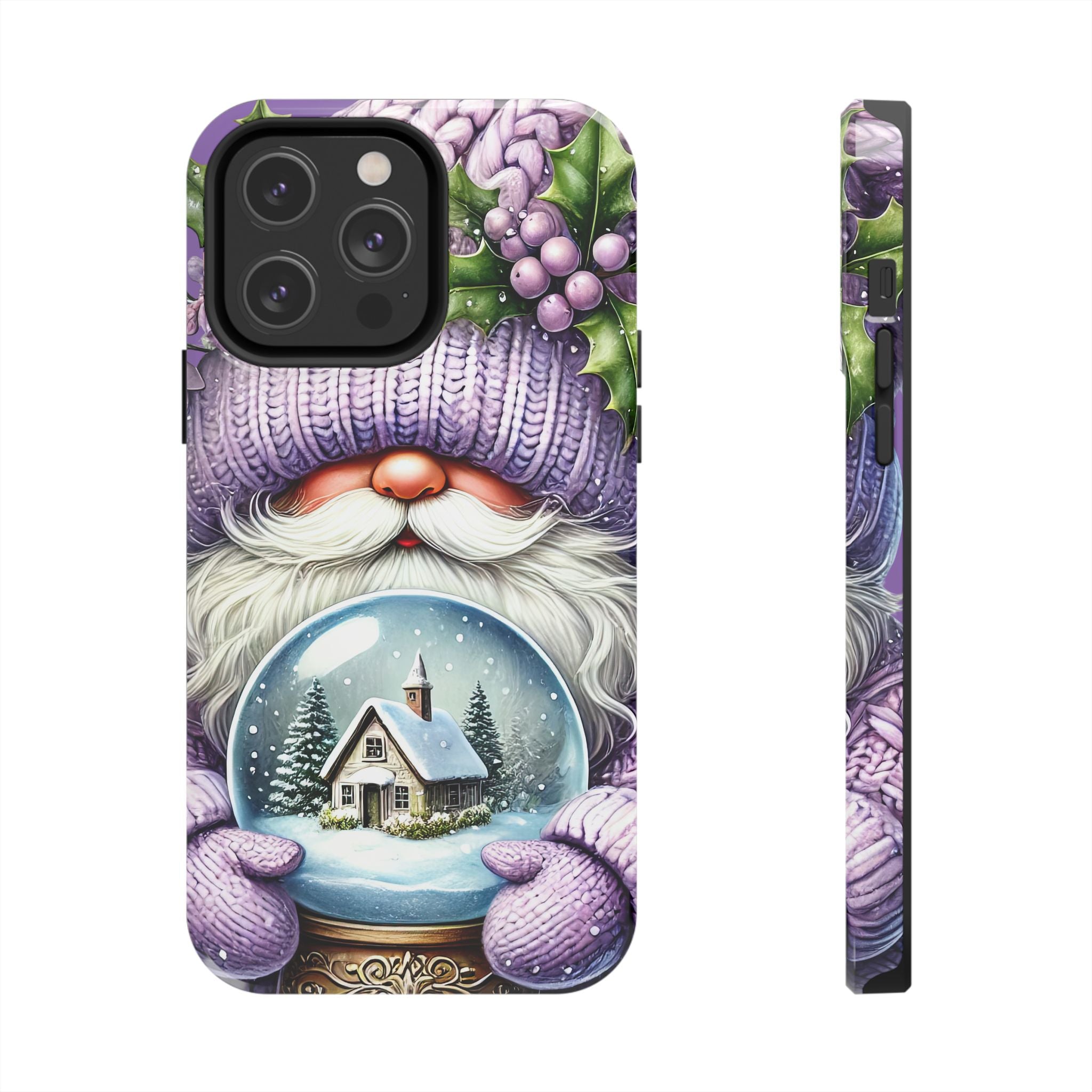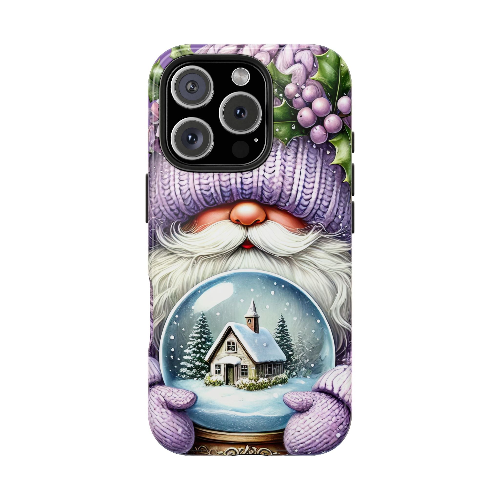 Phone Case Christmas Gnome Purple Snow Globe Holiday Protective Cover iPhone And Samsung Tough Case Impact Resistant