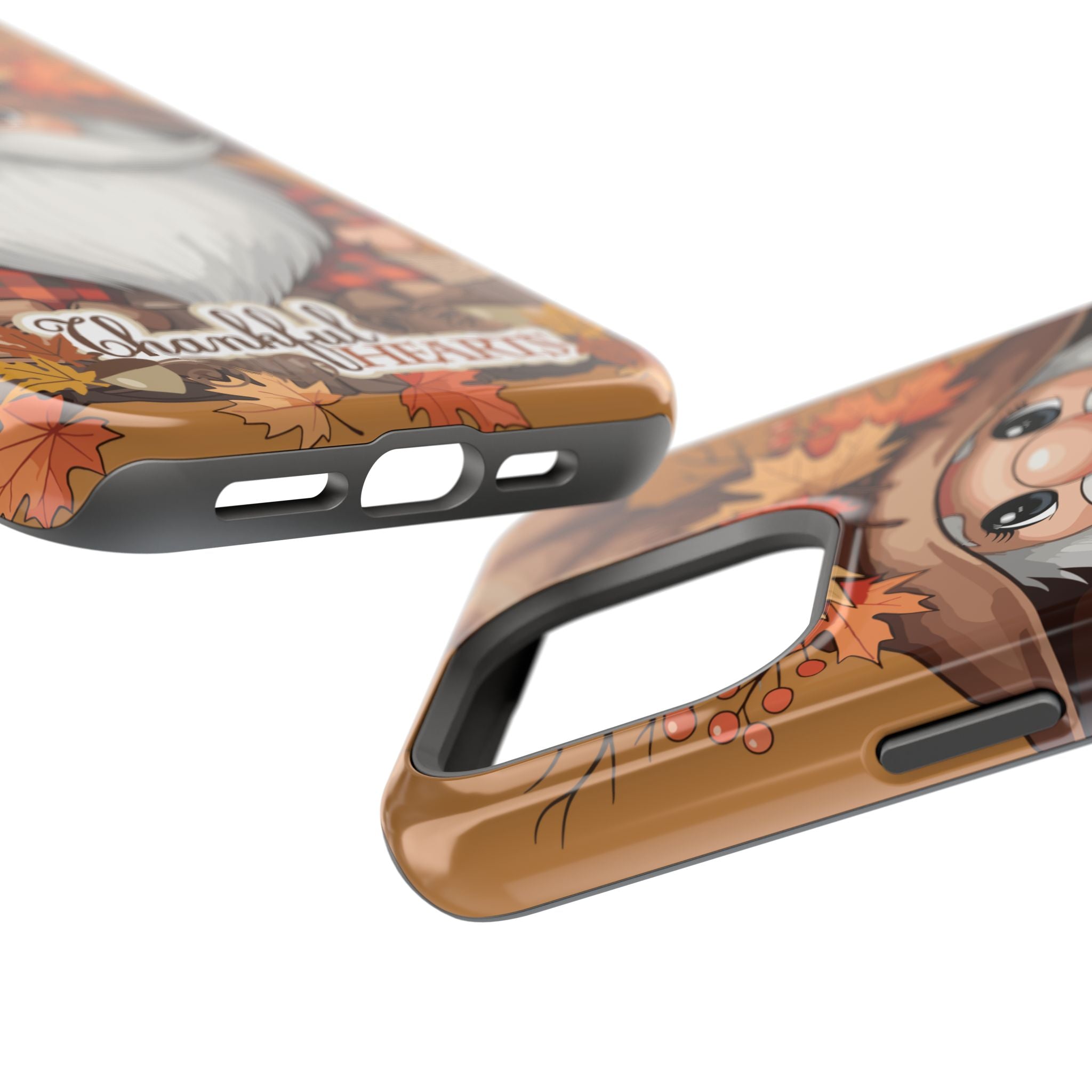 This impact-resistant case is the perfect blend of style and protection for your phone. With a whimsical design featuring a cheerful gnome amidst autumn leaves, it brings a warm, inviting vibe to your everyday tech. Ideal for those who appreciate unique and fun accessories, this case is perfect for anyone looking to showcase their personality. It's especially relevant during the fall season, making it a great gift for Thanksgiving, cozy gatherings, or just as a seasonal treat for loved ones. Whether you're at a family dinner or out enjoying the crisp autumn air, this case is a constant reminder to be thankful and festive!