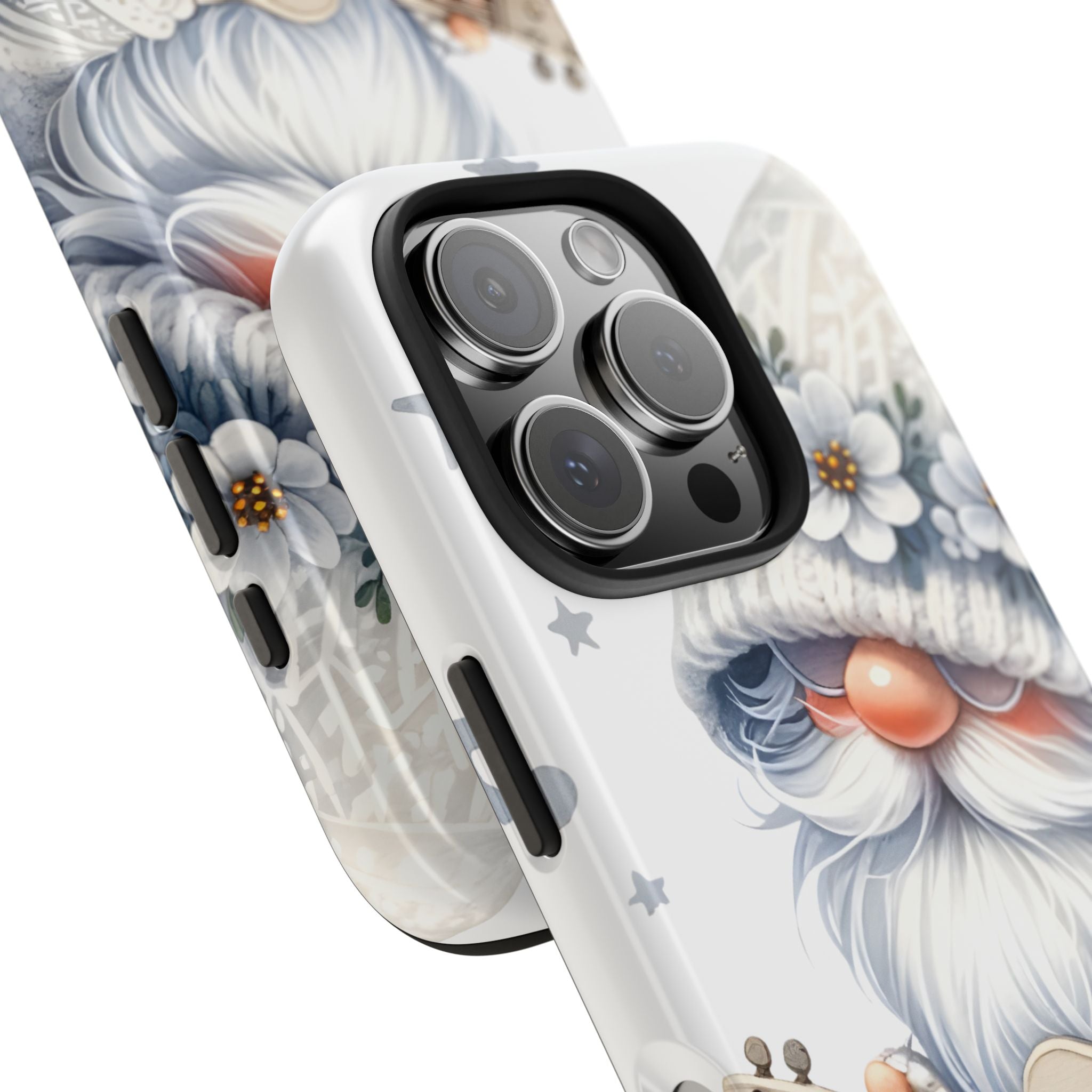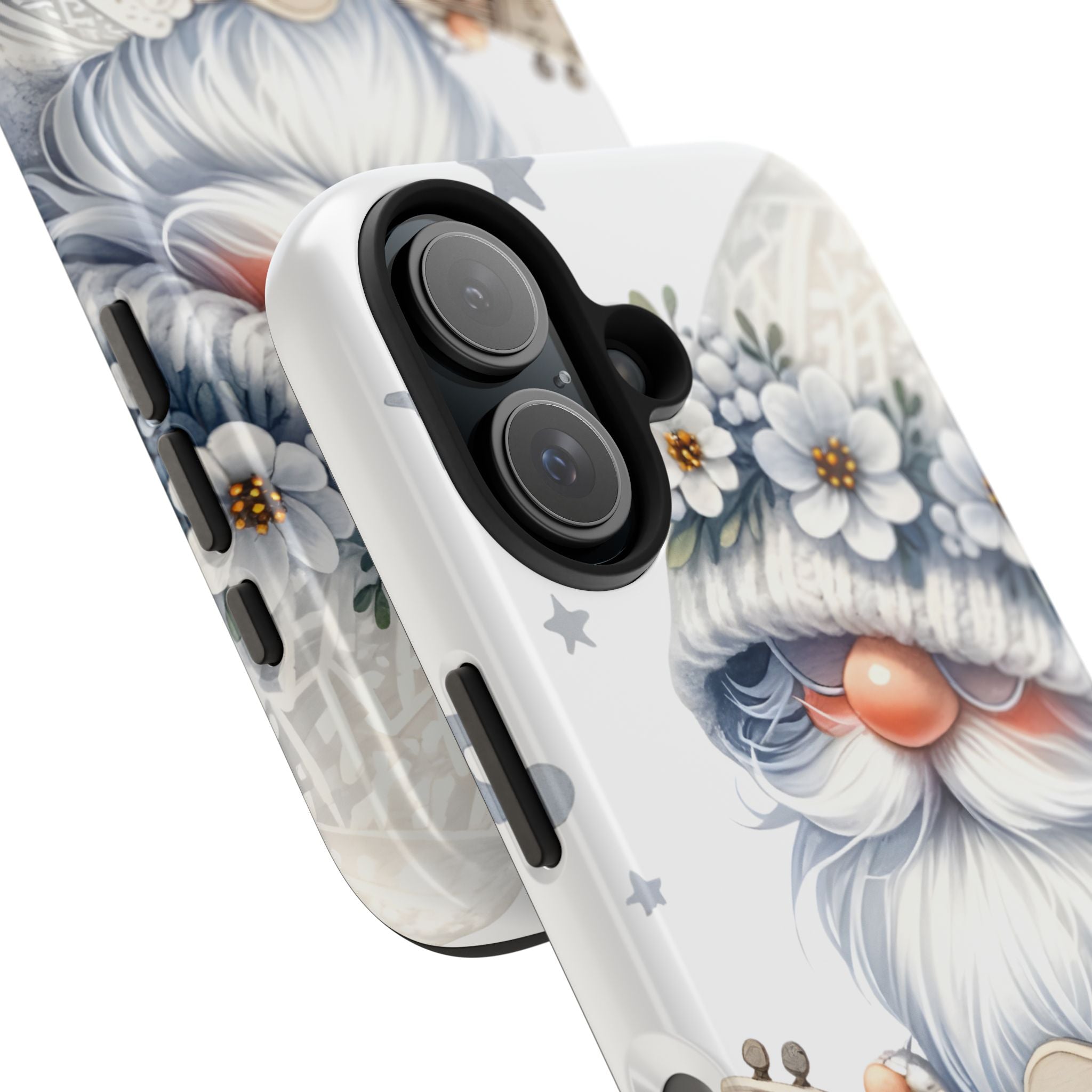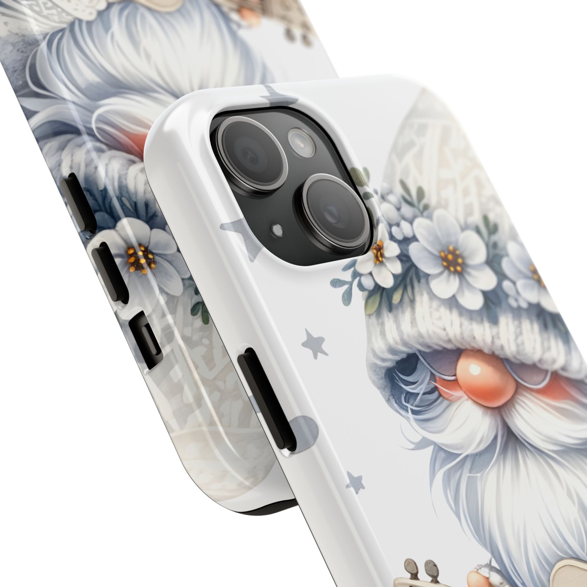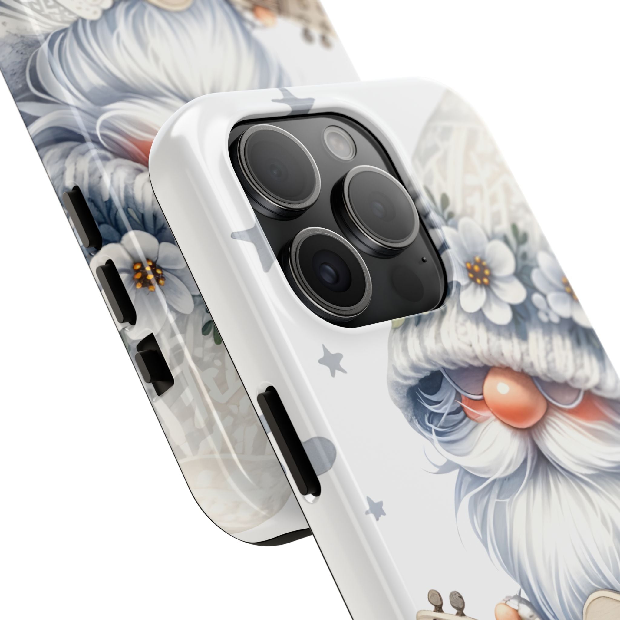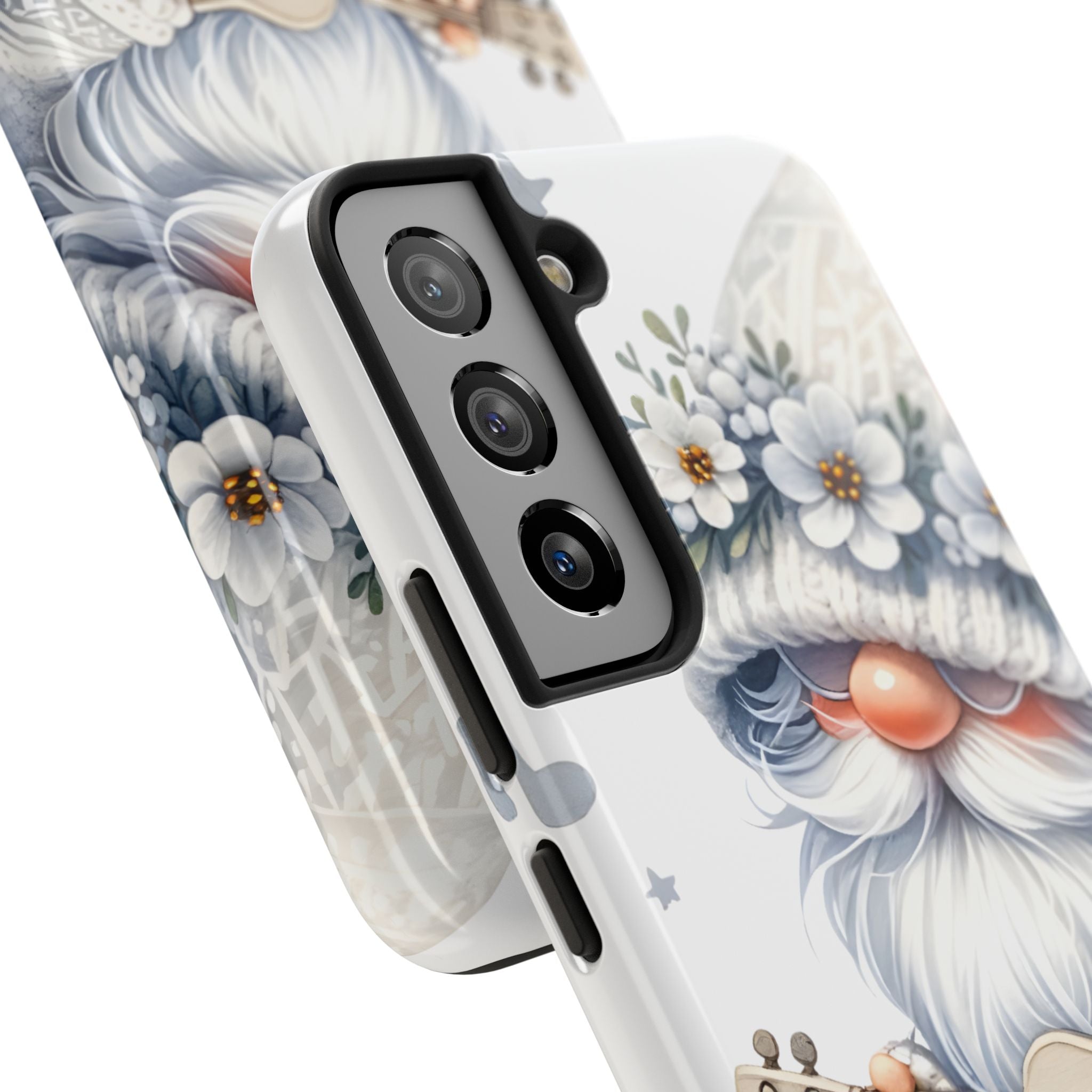 The White Gnome Phone Case, Tough Lexan Plastic With Rubber Liner, Festive Gift for Christmas, Winter Celebrations, Cute and Durable Case