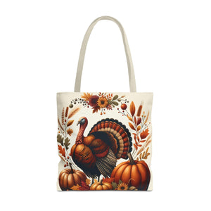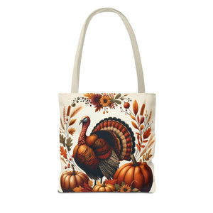 Embrace the autumn vibe with this stunning tote bag adorned with a vibrant turkey and rich fall foliage. Perfect for carrying your essentials whether you're heading to a harvest festival, a family gathering, or simply enjoying a day out. This versatile tote not only showcases your love for the season but also serves as a practical accessory for everyday use. Ideal for anyone looking to add a touch of seasonal charm to their wardrobe, it's a fantastic gift for friends and family during Thanksgiving or Halloween. Celebrate the spirit of the holidays while keeping your essentials stylishly organized with this durable and beautifully designed tote!